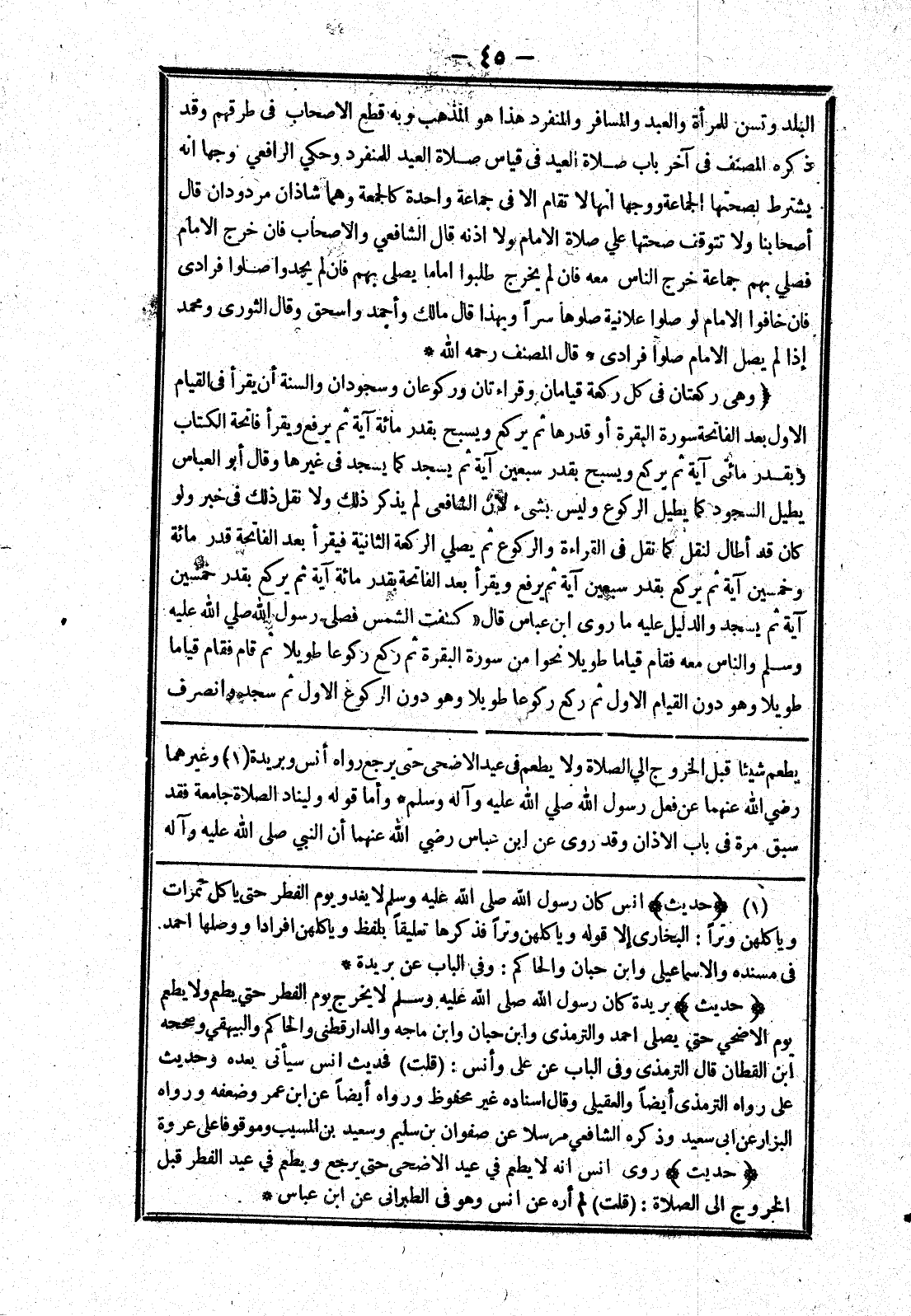 يطعم شيئا قبل الخروج الي الصثلاة ولا يطعم في عيد الاضحى حتى يرجع رواه أنس وبريدة وغيرهما رضي الله عنهما عن فعل رسول الله صلي الله عليه وسلم * وأما قوله وليناد الصلاة جامعة فقد سبق مرة في باب الاذان وقد روى عن ابن عباس رضي الله عنهما أن النبي صلى الله عليه وسلم