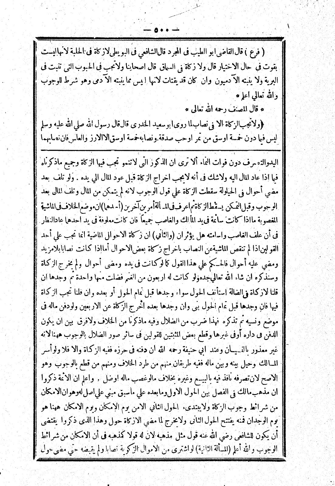 اليد والتصرف دون فوات النماء ألا ترى ان الذكور التى لا تنمو تجب فيها الزكاة وجميع ما ذكرناه فيما إذا عاد المال إليه إليه ولا شك في أنه لا يجب اخراج الزكاة قبل عود المال الي يده.