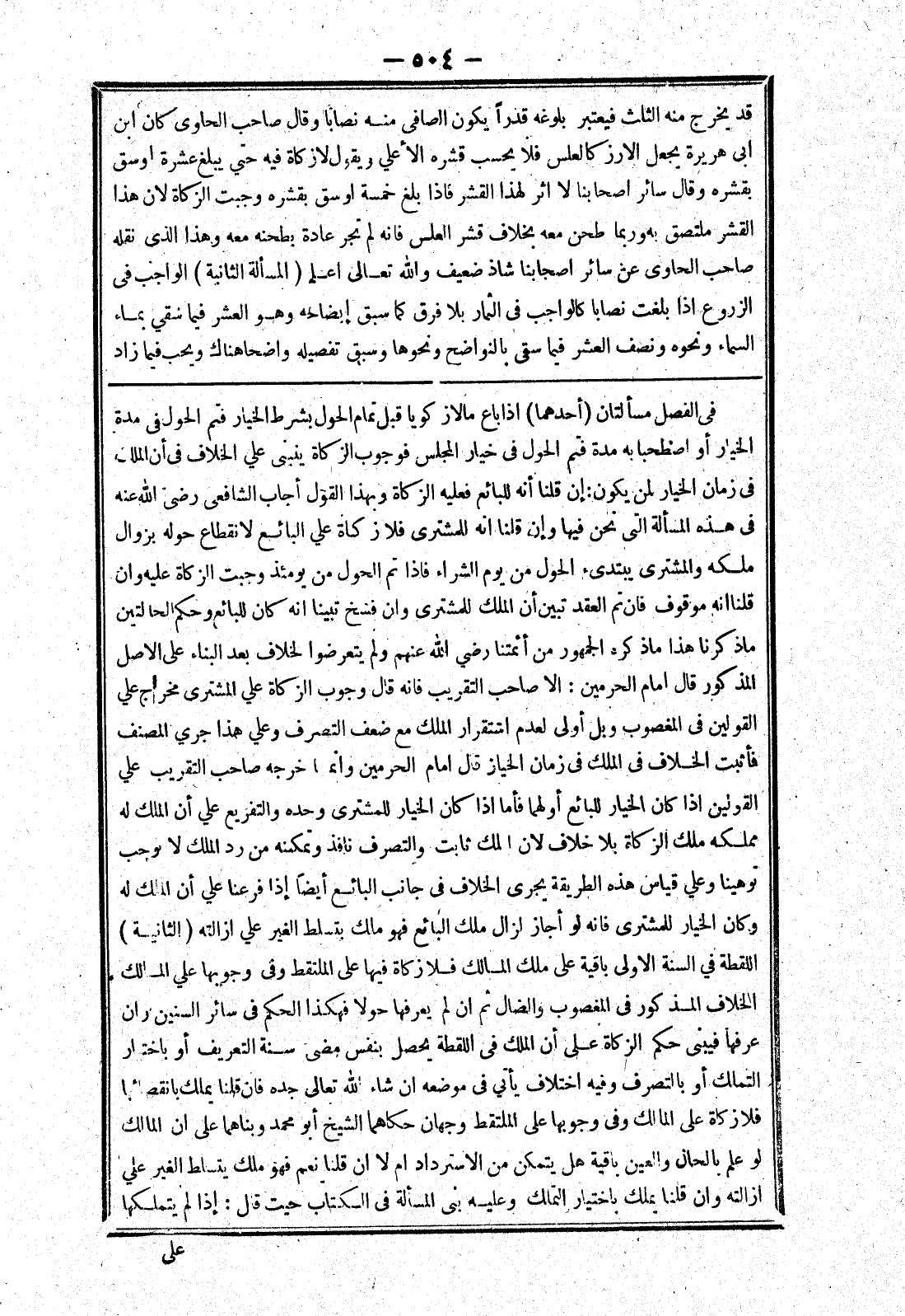 في الفصل مسألتان (أحدهما) إذا باع مالا زكويا قبل تمام الحول بشرط الخيار فتم الحول في مدة الخيار أو اصطحبابه مدة فتم الحول في خيار المجلس فوجوب الزكاة ينبنى علي الخلاف في أن الملك في زمان الخيار لمن يكون: إن قلنا أنه للبائع فعليه الزكاة وبهذا القول أجاب الشافعي رضى الله عنه في هذه المسألة التى نحن فيها وإن قلنا انه للمشترى فلا زكاة علي البائع لانقطاع حوله بزوال ملكه والمشترى يبتدئ الحول من يوم الشراء فإذا تم الحول من يومئذ وجبت الزكاة عليه وان قلنا انه موقوف فان تم العقد تبين الملك للمشترى وان فسخ تبينا انه كان للبائع وحكم الحالتين ما ذكرنا هذا ما ذكره الجمهور من أئمتنا رضي الله عنهم ولم يتعرضوا لخلاف بعد البناء على الاصل المذكور قال امام الحرمين: الا صاحب التقريب فانه قال وجوب الزكاة علي المشترى مخرج علي القولين في المغصوب وبل أولى لعدم استقرار الملك مع ضعف التصرف وعلي هذا جري المصنف فاثبت الخلاف في الملك في زمان الخيار قال امام الحرمين وانما خرجه صاحب التقريب علي القولين إذا كان الخيار للبائع أو لهما فأما إذا كان الخيار للمشترى وحده والتفريع علي أن الملك له مملكه ملك الزكاة بلا خلاف لان الملك ثابت والتصرف نافذ وتمكنه من رد الملك لا يوجب توهينا وعلي قياس هذه الطريقة يجرى الخلاف في جانب البائع أيضا إذا فرعنا علي أن الملك له وكان الخيار للمشترى فانه لو أجاز لزال ملك البائع فهو ملك بتسلط الغير علي ازالته (الثانية) اللقطة في السنة الاولى باقية على ملك المالك فلا زكاة فيها على الملتقط وفي وجوبها علي المالك الخلاف المذكور في المغصوب والضال ثم ان لم يعرفها حولا فهكذا الحكم في سائر السنين وان عرفها فيبنى حكم الزكاة على أن الملك في اللقطة يحصل بنفس مضى سنة التعريف أو باختيار التملك أو بالتصرف وفيه اختلاف يأتي في موضعه ان شاء الله تعالى جده فان قلنا يملك بانقضائها فلا زكاة على المالك وفي وجوبها على الملتقط وجهان حكاهما الشيخ أبو محمد وبناهما على ان المالك لو علم بالحال والعين باقية هل يتمكن من الاسترداد ولا ان قلنا نعم فهو ملك يتسلط الغير علي ازالته وان قلنا يملك باختيار التملك وعليه بنى المسالة في الكتاب حيث قال: إذا لم يتملكها