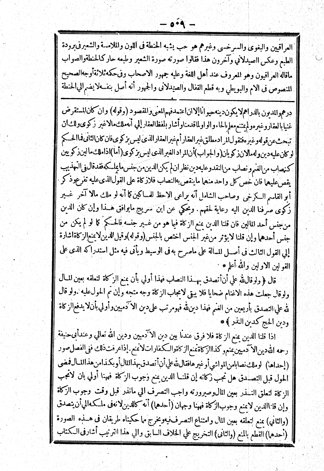 درهم والمديون بالدراهم لا يكون دينه حيوانا إلا ان اعتمد فهم المعنى والمقصود (وقوله) وان كان المستقرض غنيا بالعقار وغيره ولم يمتنع معلم بالحاء والواو لما قدمنا وأشار بلفظ العقار إلي أنه ملك ما لا غير زكوى ولك ان تبحث عن قوله وغيره فتقول المراد مطلق غير العقار أم غير العقار الذى ليس بزكوى فان كان الثاني فما الحكم لو كان عليه دين وله مالان زكويان (والجواب) أن المراد الغير الذى ليس بزكوى (أما) إذا ملك ما لين زكويين كنصاب من الغنم ونصاب من النقد وعليه دين نظر ان لم يكن الدين من جنس ما يملكه فقد قال في التهذيب يقض عليهما فان خص كل واحد منهما ما ينقص به النصاب فلا زكاة على القول الذى عليه تفرع وذكر أبو القاسم الكرخي وصاحب الشامل أنه يراعى الاحظ للمساكين كما أنه لو ملك مالا آخر غير زكوى صرفنا لا ادين إليه رعاية لحقهم.