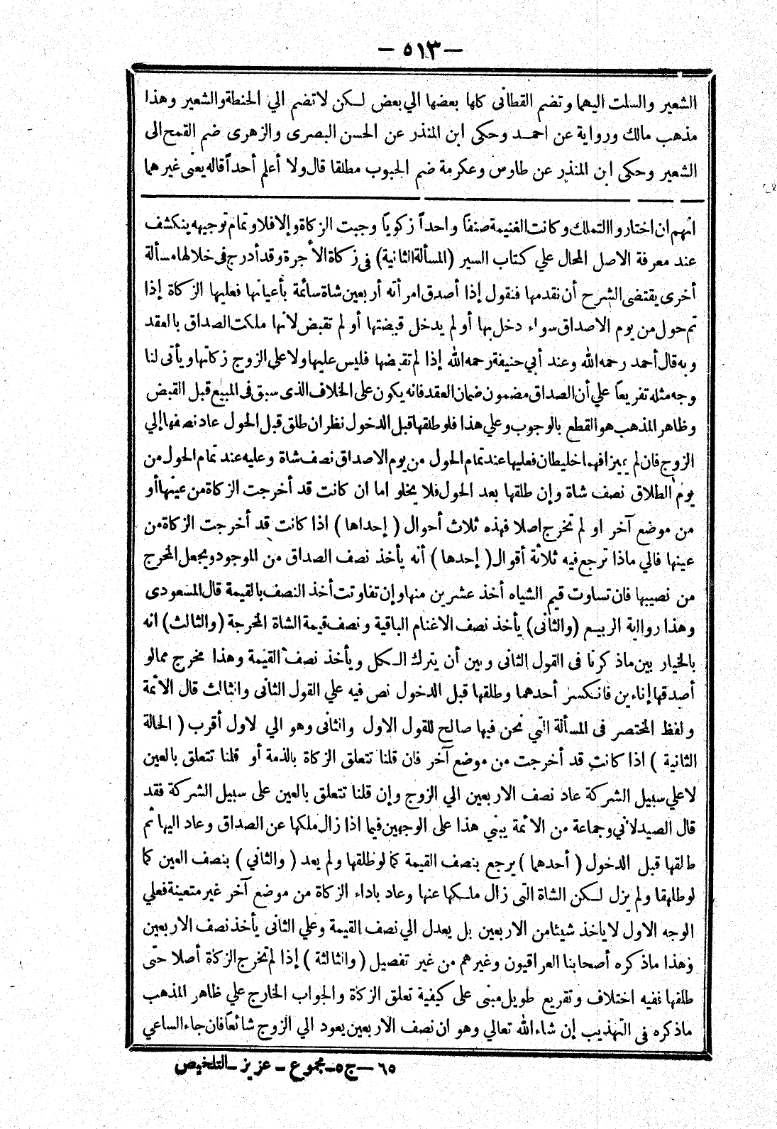 ما ذكره في التهذيب إن شاء الله تعالي وهو ان نصف الاربعين يعود الي الزوج شائعا فان جاء الساعي