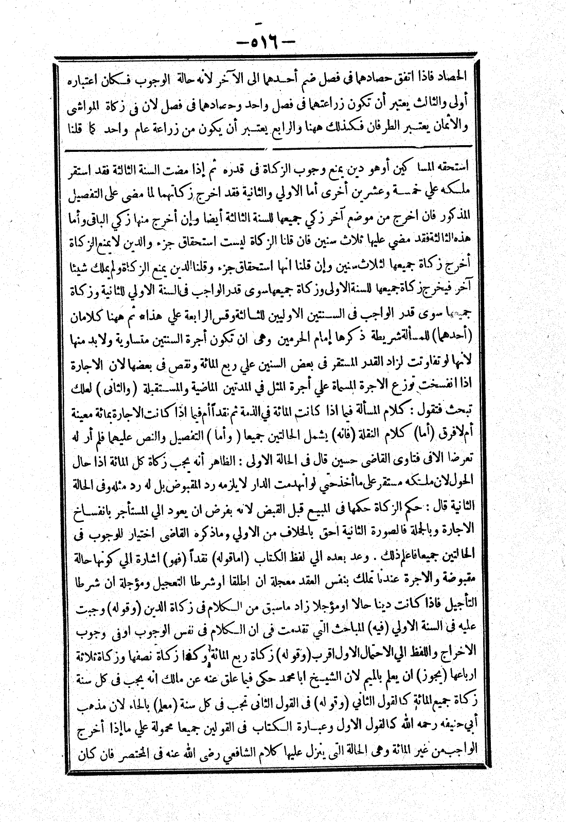تعرضا الا في فتاوى القاضى حسين قال في الحالة الاولى: الظاهر أنه يجب زكاة كل المائة إذا حال الحول لان ملكه مستقر على ما أخذ حتي لو انهدمت الدار لا يلزمه رد المقبوض بل له رد مثله وفي الحالة الثانية قال: حكم الزكاة حكمها في المبيع قبل القبض لانه بفرض ان يعود الي المستأجر بانفساخ الاجارة وبالجملة فالصورة الثانية احق بالخلاف من الاولي وما ذكره القاضى اختيار للوجوب في الحالتين جميعا فاعلم ذلك.