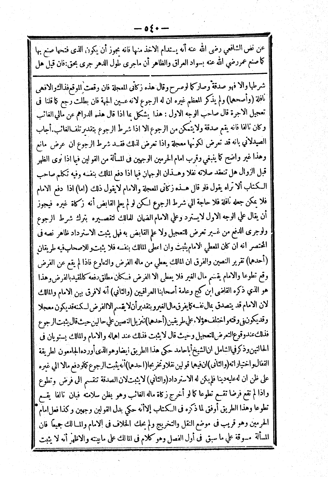وهذا غير واضح كما ينبغي وقرب امام الحرمين في المسالة من القولين فيما إذا نوى الظهر قبل الزوال هل تنعقد صلاته نفلا وهذان الوجهان فيما إذا دفع المالك بنفسه وفيه تكلم صاحب الكتاب ألا تراه يقول فلو قال هذه زكاتي المعجلة والامام لا يقول ذلك (اما) إذا دفع الامام فلا يمكن حعله نافلة فلا حاجة الي شرط الرجوع لكن لو لم يعلم القابض أنه زكاة غيره فيجوز أن يقال علي الوجه الاول لا يسترد وعلي الامام الضمان للمالك لتقصيره بترك شرط الرجوع ولو جرى الدفع من غير تعرض للتعجيل ولا علم القابض به فهل يثبت الاسترداد ظاهر نصه في المختصر انه ان كان المعطي الامام يثبت وان اعطى المالك بنفسه فلا يثبت وللاصحاب فيه طريقان (أحد هما) تقرير النصين والفرق ان المالك يعطي من ماله الفرض التطوع فإذا لم يقع عن الفرض وقع تطوعا والامام يقسم مال الغير فلا يعطى الا الفرض فكان مطلق دفعه كالمقيد بالفرض وهذا هو الذي ذكره القاضى ابن كج وعامة أصحابنا العراقيين (والثاني) أنه لا فرق بين الامام والمالك لان الامام قد يتصدق بمال نفسه كما يفرق مال الغير وبتقدير أن لا يقسم الا الفرض لكنه قد يكون معجلا وقد يكون في وقته واختلف هؤلاء علي طريقين (أحدهما) تنزيل النصين علي حالين حيث قال يثبت الرجوع فذلك عند وقوع التعرض للتعجيل وحيث قال لا يثبت فذلك عند اهماله والامام والمالك يستويان في الحالتين وذكر في الشامل ان الشيخ أبا حامد حكى هذا الطريق ايضا وهو الذى أورده الجامعون لطريقة القفال واختياراته (والثانى) ان فيهما قولين نقلا وتخريجا (احدهما) أنه يثبت الرجوع كما لو دفع مالا الي غيره على ظن ان له عليه دينا فلم يكن له الا سترداد (والثاني) لا يثبت لان الصدقة تنقسم إلى فرض وتطوع وإذا لم تقع فرضا تقع تطوعا كما لو أخرج زكاة ماله الغائب وهو يظن سلامته فبان تالفا يقع تطوعا وهاذ الطريق أو فق لما ذكره في الكتاب إلا أنه حكي بدل القولين وجهين وكذا فعل امام الحرمين وهو قريب في موضع النقل والتخريج ولم يحك الخلاف في الامام والمالك جميعا فان المسألة مسوقة علي ما سبق في أول الفصل وهو كلام في المالك على ما بينته والاظهر أنه لا يثبت