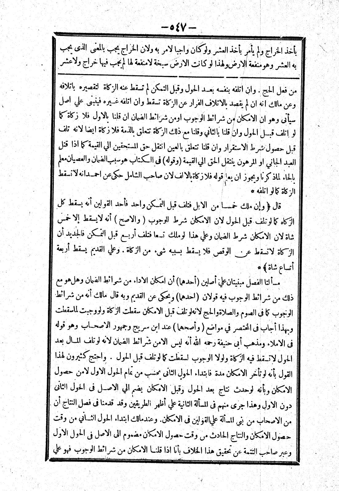 واحتج كثيرون لهذا القول بأنه لو تأخر الامكان مدة فابتداء الحول الثاني يحسب من تمام الحول الاول لامن حصول الامكان وبأنه لو حدث نتاج بعد الحول وقبل الامكان يضم الي الاصل في الحول الثاني دون الاول وهذا جرى منهم في المسألة الثانية علي أظهر الطريقين وقد قدمنا في فصل النتاج أن من الاصحاب من بنى المسألة علي القولين في الامكان.