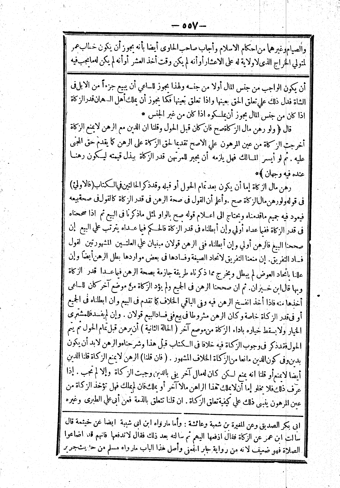 وأعلم أن القول في صحة الرهن في قدر الزكاة كالقول في صحة بيعه فيعود فيه جميع ما قدمناه ويحتاج إلى اعلام قوله صح بالواو لمثل ما ذكرنا في البيع ثم إذا صححناه في قدر الزكاة ففيما عداه أولي وإن أبطلناه في قدر الزكاة فالحكم فيما عداه يترتب علي البيع إن صححنا البيع فالرهن أولي وإن أبطلناه ففى الرهن قولان مبنيان علي العلتين المشهورتين لقول فساد التفريق.