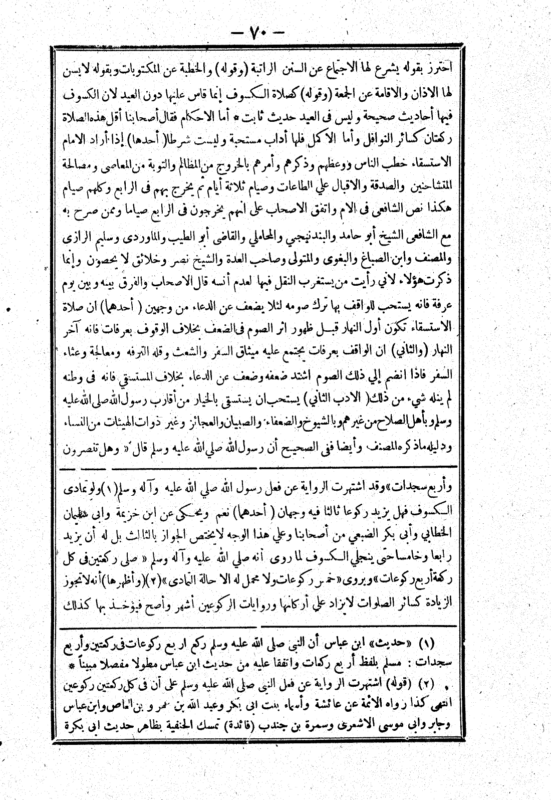 وأربع سجدات) وقد اشتهرت الرواية عن فعل رسول الله صلي الله عليه وسلم وسلم ولو تمادى الكسوف فهل يزيد ركوعا ثالثا فيه وجهان (أحدهما) نعم ويحكى عن ابن خزيمة وابى سليمان الخطابي وأبى بكر الضبعي من أصحابنا وعلى هذا الوجه لا يختص الجواز بالثالث بل له أن يزيد ركعة أربع ركوعات) ويروى (خمس ركوعات ولا محمل له الا حالة التمادي) (وأظهرها) أنه لا تجوز الزيادة كسائر الصلوات لا يزاد على أركانها وروايات الركوعين أشهر وأصح فيؤخذ بها كذلك