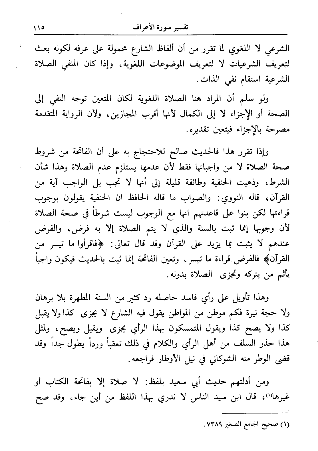 ولو سلم أن المراد هنا الصلاة اللغوية لكان المتعين توجه النفي إلى الصحة أو الإجزاء لا إلى الكمال لأنها أقرب المجازين، ولأن الرواية المتقدمة مصرحة بالإجزاء فيتعين تقديره.