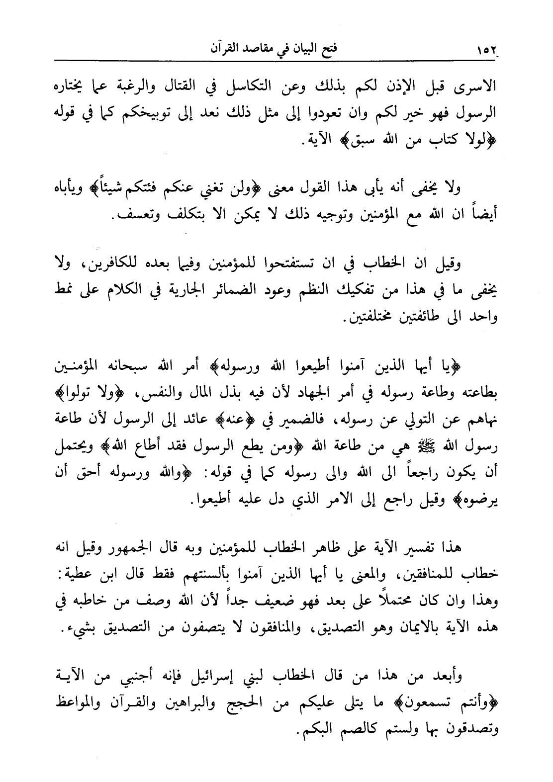 وقيل أن الخطاب في أن تستفتحوا للمؤمنين وفيما بعده للكافرين، ولا يخفى ما في هذا من تفكيك النظم وعود الضمائر الجارية في الكلام على نمط واحد إلى طائفتين مختلفتين.