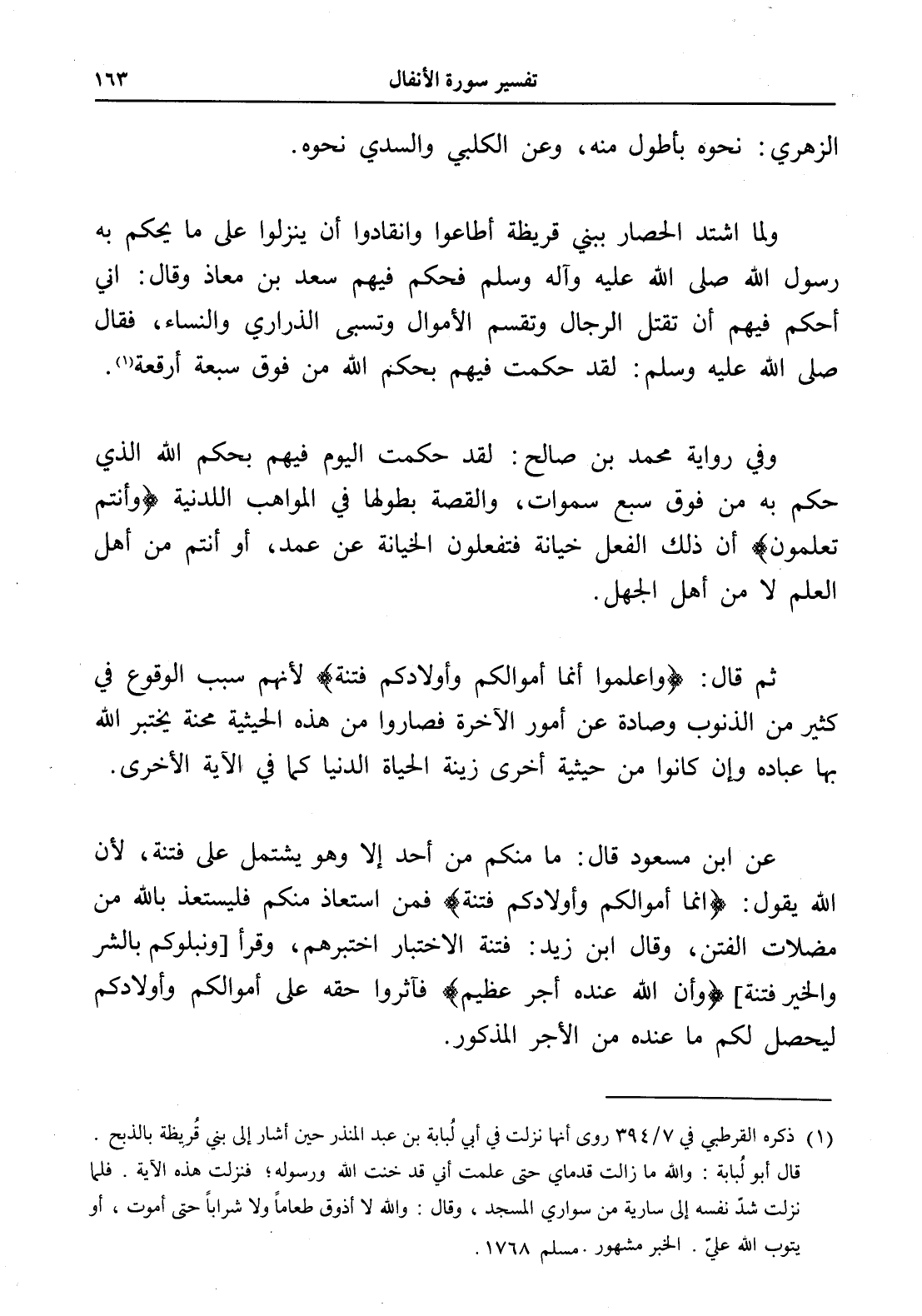 وفي رواية محمد بن صالح: لقد حكمت اليوم فيهم بحكم الله الذي حكم به من فوق سبع سموات، والقصة بطولها في المواهب اللدنية (وأنتم تعلمون) أن ذلك الفعل خيانة فتفعلون الخيانة عن عمد، أو أنتم من أهل العلم لا من أهل الجهل.