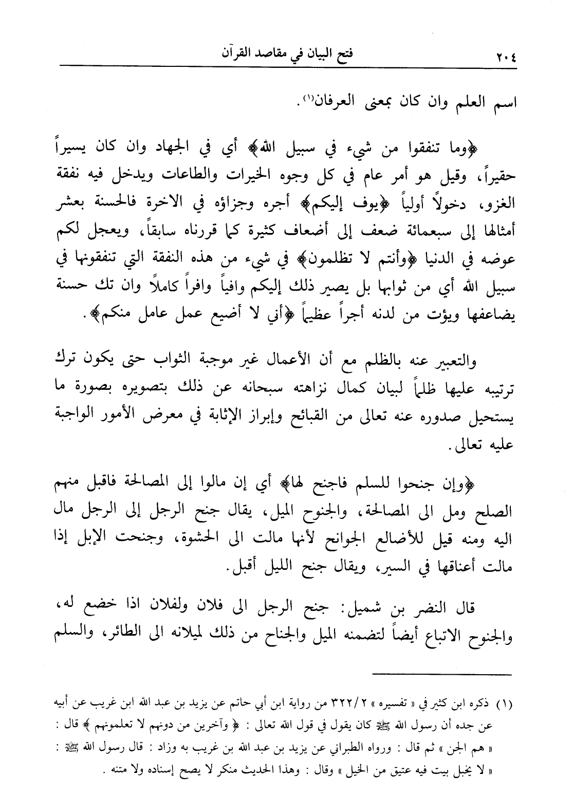 (¬1) ذكره ابن كثير في " تفسيره " 2/ 322 من رواية ابن أبي حاتم عن يزيد بن عبد الله ابن غريب عن أبيه عن جده أن رسول الله - صلى الله عليه وسلم - كان يقول في قول الله تعالى: (وآخرين من دونهم لا تعلمونهم). قال: " هم الجن " ثم قال: ورواه الطبراني عن يزيد بن عبد الله بن غريب به وزاد: قال رسول الله - صلى الله عليه وسلم -: " لا يخبل بيت فيه عتيق من الخيل " وقال: وهذا الحديث منكر لا يصح إسناده ولا متنه.