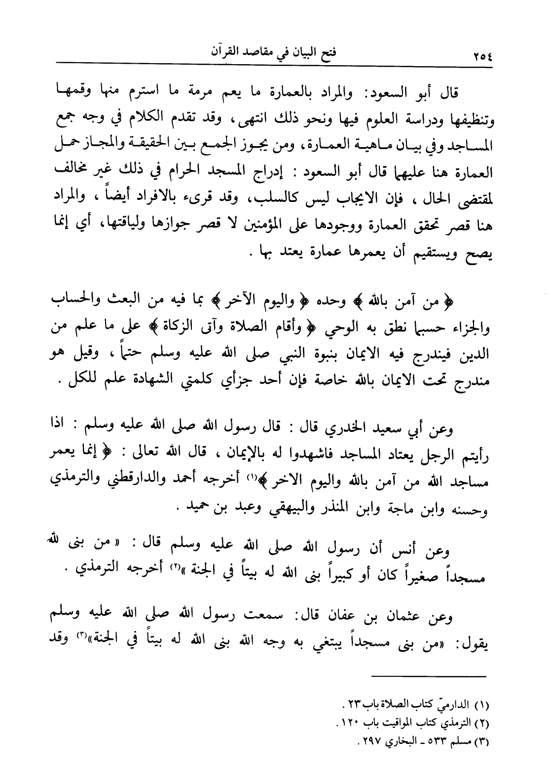 وعن عثمان بن عفان قال: سمعت رسول الله صلى الله عليه وسلم يقول: " من بنى مسجداً يبتغي به وجه الله بنى الله له بيتاً في الجنة " (¬3) وقد