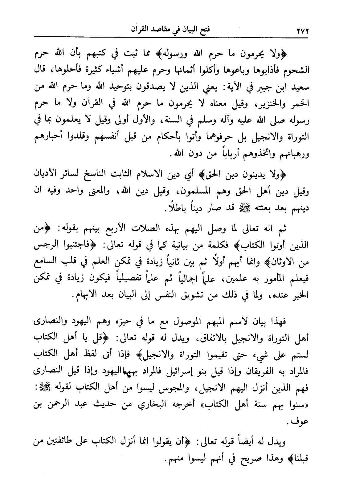 فهذا بيان لاسم المبهم الموصول مع ما في حيزه وهم اليهود والنصارى أهل التوراة والإنجيل بالاتفاق، ويدل له قوله تعالى: (قل يا أهل الكتاب لستم على شيء حتى تقيموا التوراة والإنجيل) فإذا أتى لفظ أهل الكتاب فالمراد به الفريقان وإذا قيل بنو إسرائيل فالمراد بهم اليهود وإذا قيل النصارى فهم الذين أنزل إليهم الإنجيل، والمجوس ليسوا من أهل الكتاب لقوله - صلى الله عليه وسلم -: " سنوا بهم سنة أهل الكتاب " أخرجه البخاري من حديث عبد الرحمن بن عوف.