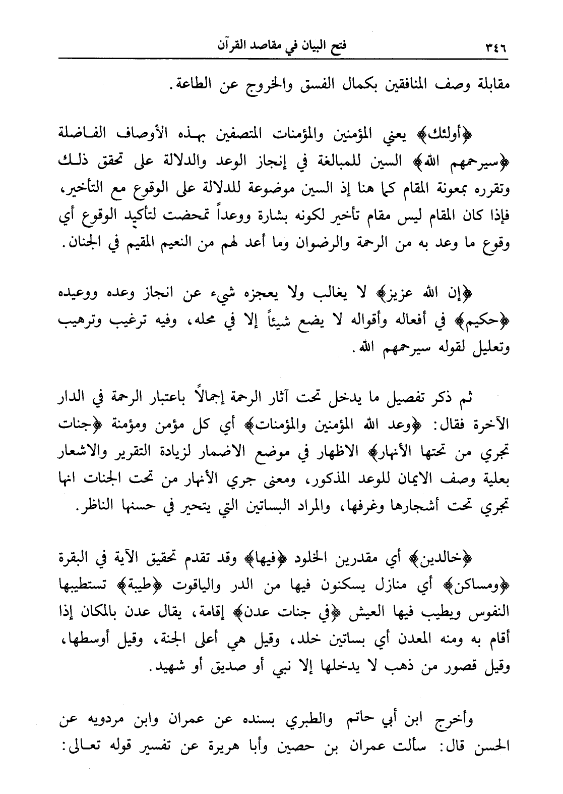 وأخرج ابن أبي حاتم والطبري بسنده عن عمران وابن مردويه عن الحسن قال: سألت عمران بن حصين وأبا هريرة عن تفسير قوله تعالى: