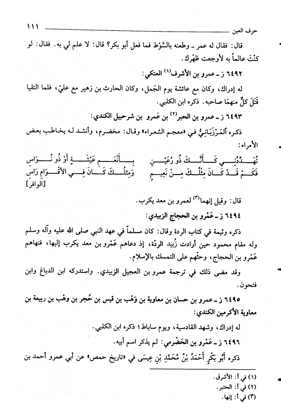 ٦٤٩٤ ز- عمرو بن الحجاج الزبيدي: