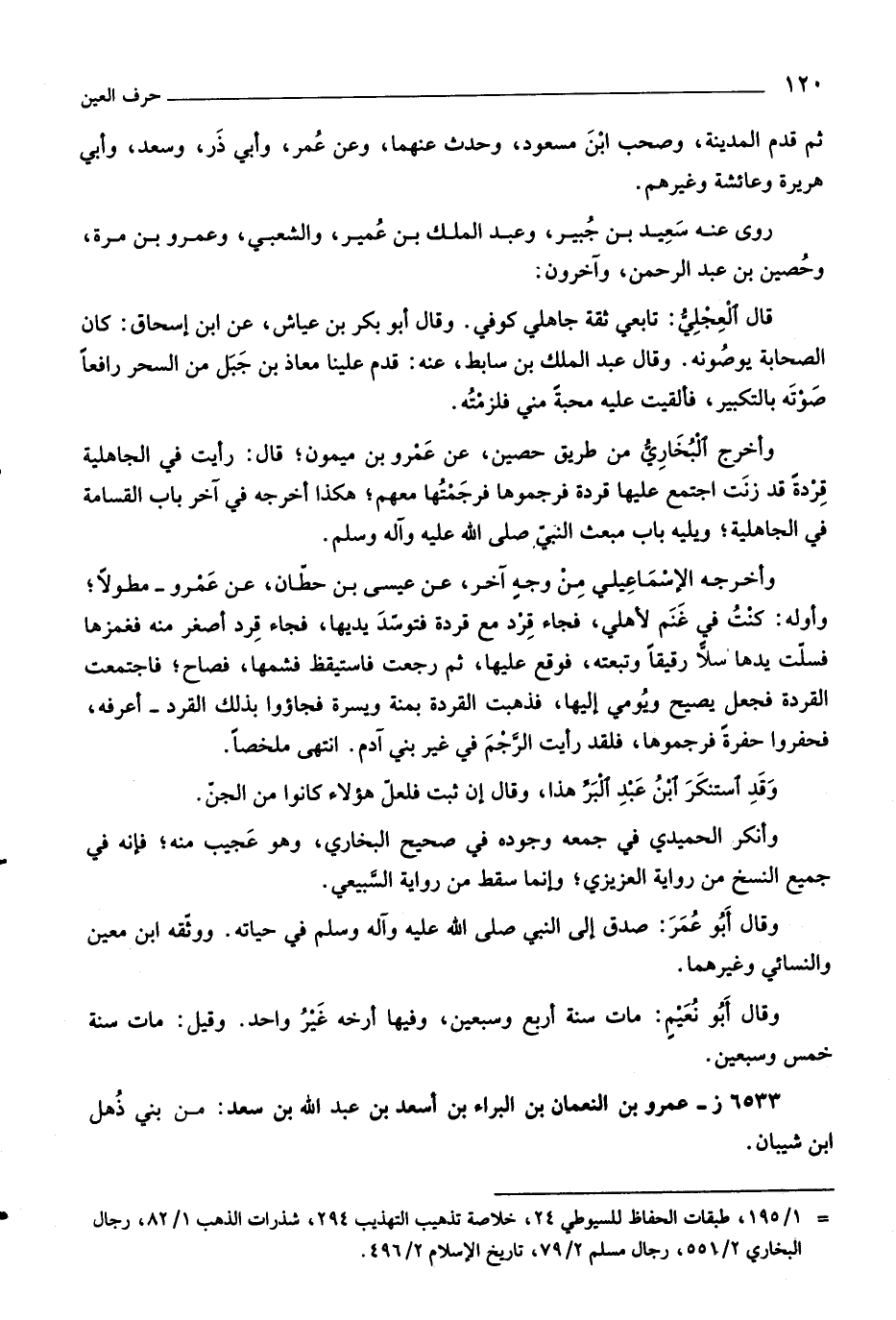 وأخرج البخاريّ من طريق حصين، عن عمرو بن ميمون، قال: رأيت في الجاهلية قردة قد زنت اجتمع عليها قردة فرجموها فرجمتها معهم، هكذا أخرجه في آخر باب القسامة في الجاهلية، ويليه باب مبعث النبيّ صلّى اللَّه عليه وآله وسلّم.