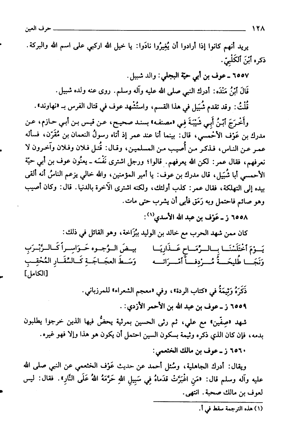 قلت: وقد تقدم شبيل في هذا القسم، واستشهد عوف في قتال الفرس ب «نهاوند» .