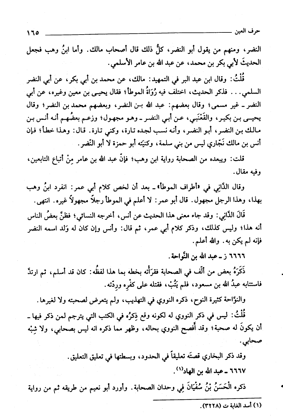قلت: وقال ابن عبد البر في التمهيد: مالك، عن محمد بن أبي بكر، عن أبي النضر السلمي ... فذكر الحديث، اختلف فيه رواة الموطأ، فقال يحيى بن معين وغيره، عن أبي النضر- غير مسمى، وقال بعضهم: عبد اللَّه بن النضر، وبعضهم محمد بن النضر، وقال يحيى بن بكير، والقعنبي، عن أبي النضر- وهو مجهول، وزعم بعضهم أنه أنس بن مالك بن النضر، أبو النضر، وأنه نسب لجده تارة، وكني تارة. قال: وهذا خطأ، فإن أنس بن مالك نجّاري ليس من بني سلمة، وكنيته أبو حمزة لا أبو النّضر.