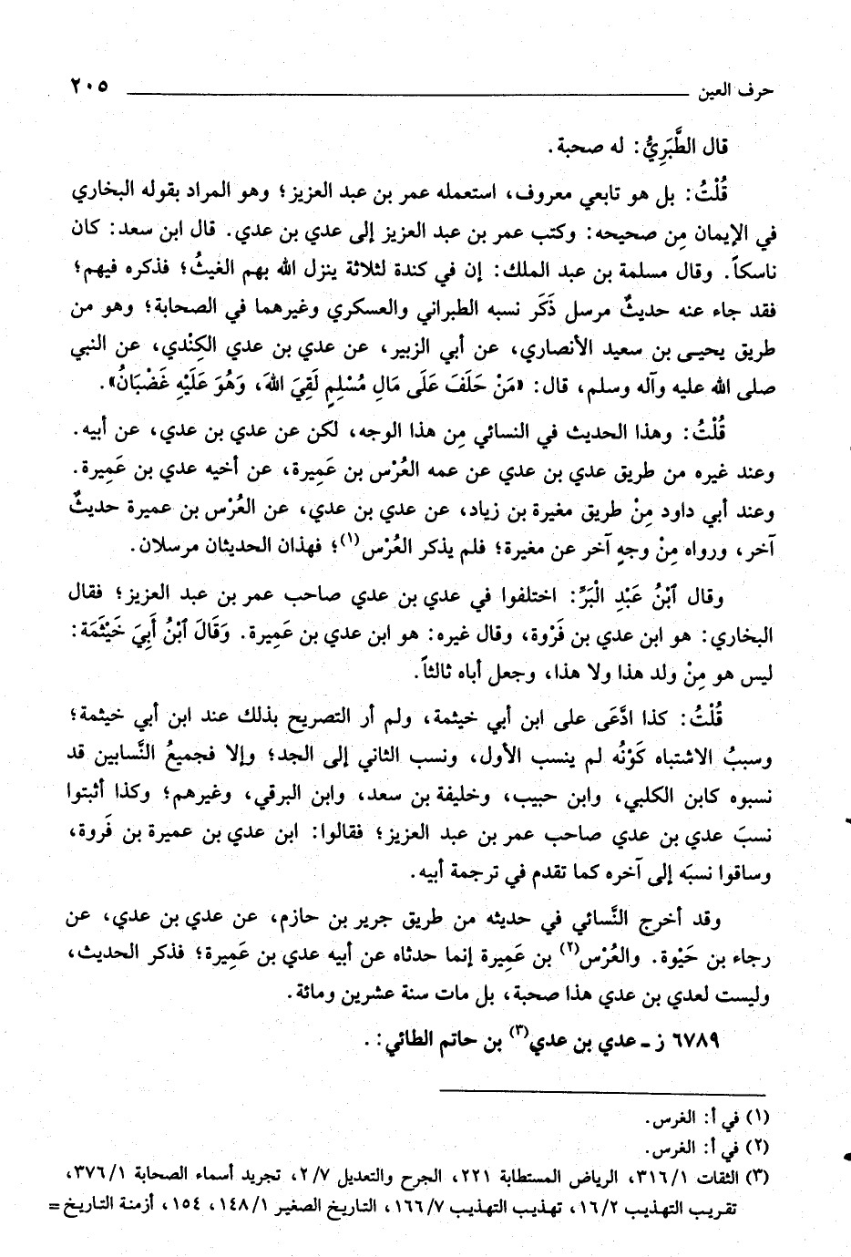 وقد أخرج النّسائي في حديثه من طريق جرير بن حازم، عن عدي بن عدي، عن رجاء بن حيوة. والعرس «٢» بن عميرة إنما حدثاه عن أبيه عدي بن عميرة، فذكر الحديث، وليس لعدي بن عدي هذا صحبة، بل مات سنة عشرين ومائة.
