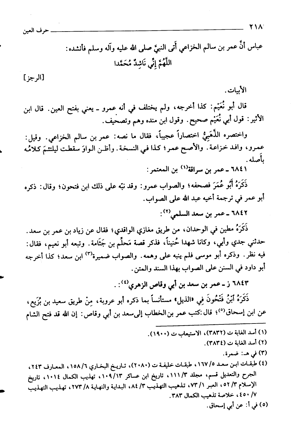 واختصره الذّهبيّ اختصارا عجيبا، فقال ما نصه: عمر بن سالم الخزاعي. وقيل: