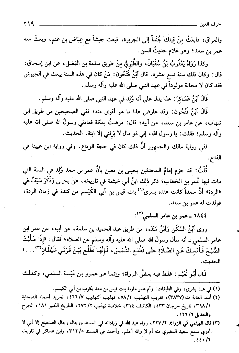 قلت: قد جزم إمام المحدثين يحيى بن معين بأنّ عمر بن سعد ولد في السنة التي مات فيها عمر بن الخطاب، ذكر ذلك ابن أبي خيثمة في تاريخه، عن يحيى وذكر سيف في «الردة» أنّ سعدا كانت عنده يسرى»