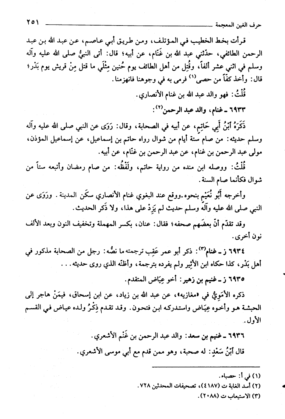 (٢) أسد الغابة ت (٤١٨٧) ، تصحيفات المحدثين ٧٢٨) .