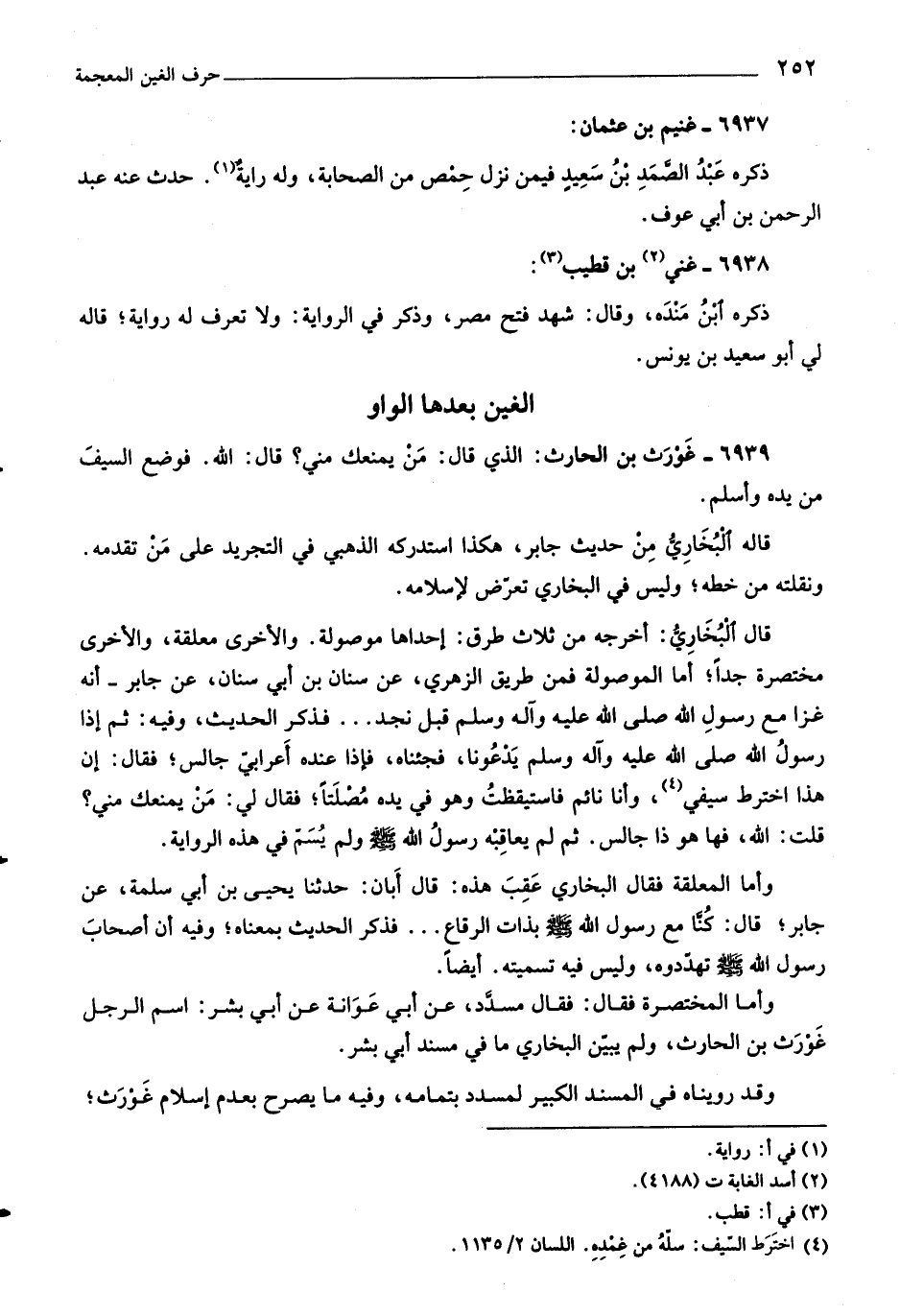 وأما المختصرة فقال: فقال مسدّد، عن أبي عوانة عن أبي بشر: اسم الرجل غورث بن الحارث، ولم يبيّن البخاري ما في مسند أبي بشر.