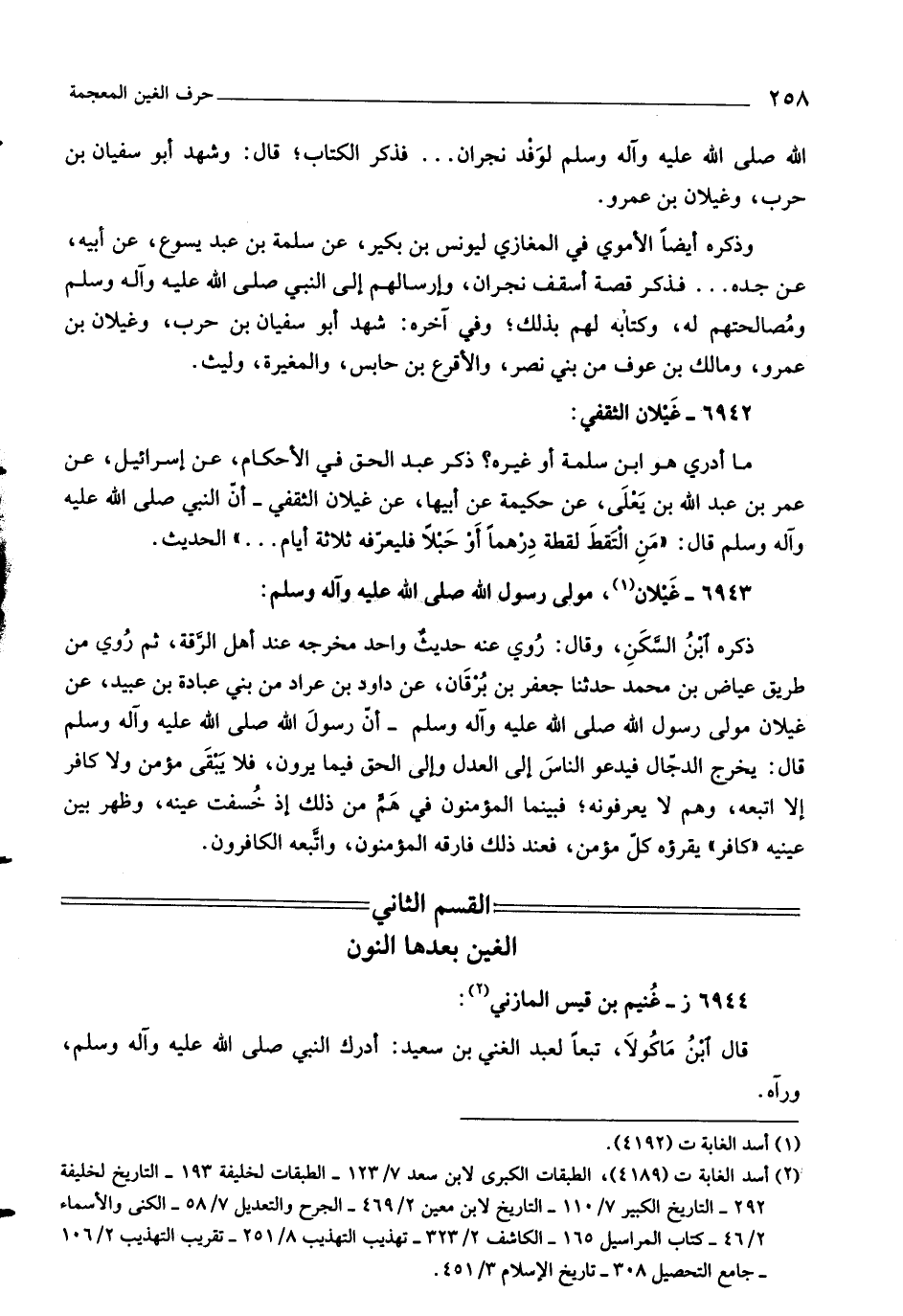 وذكره أيضا الأموي في المغازي ليونس بن بكير، عن سلمة بن عبد يسوع، عن أبيه، عن جده ... فذكر قصة أسقف نجران، وإرسالهم إلى النبي صلّى اللَّه عليه وآله وسلم ومصالحتهم له، وكتابه لهم بذلك، وفي آخره: شهد أبو سفيان بن حرب، وغيلان بن عمرو، ومالك بن عوف من بني نصر، والأقرع بن حابس، والمغيرة، وليث.