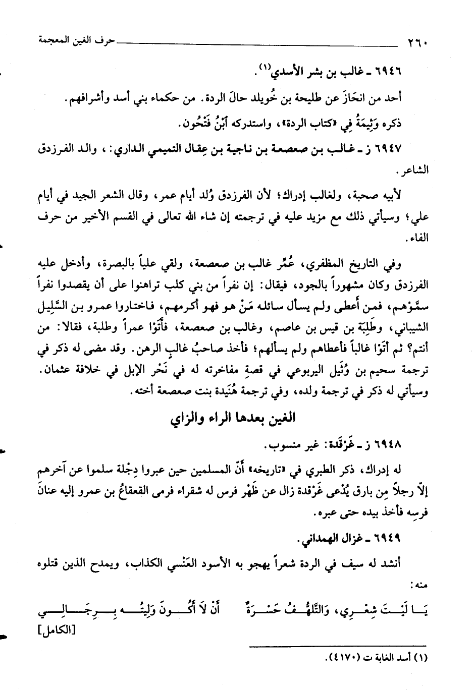 لأبيه صحبة، ولغالب إدراك، لأن الفرزدق ولد أيام عمر، وقال الشعر الجيد في أيام علي، وسيأتي ذلك مع مزيد عليه في ترجمته إن شاء اللَّه تعالى في القسم الأخير من حرف الفاء.