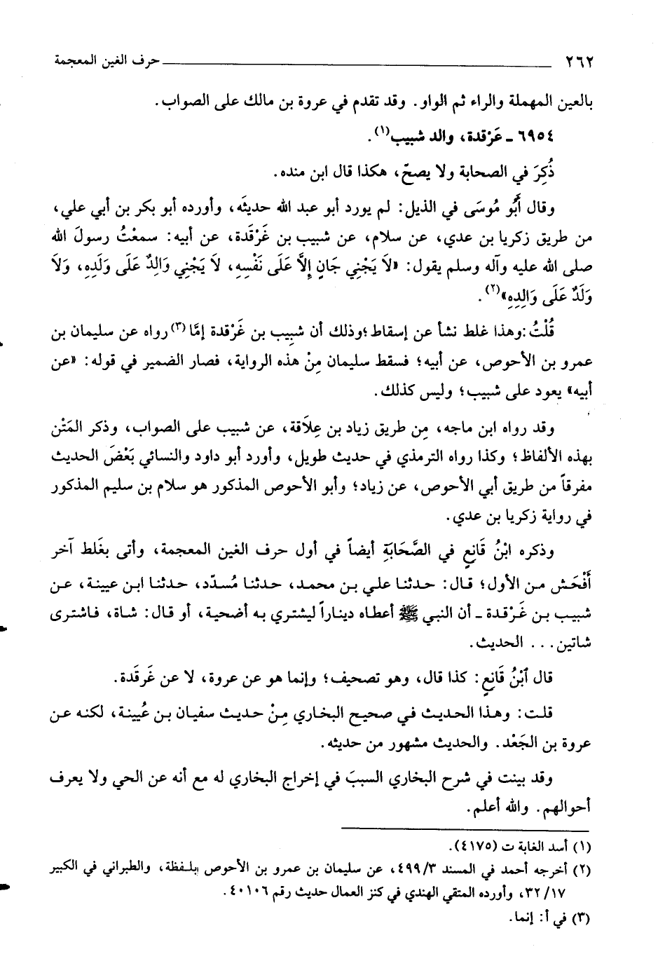 قلت: وهذا غلط نشأ عن إسقاط، وذلك أن شبيب بن غرقدة إمّا «٣» رواه عن سليمان بن عمرو بن الأحوص، عن أبيه، فسقط سليمان من هذه الرواية، فصار الضمير في قوله: «عن أبيه» يعود على شبيب، وليس كذلك.