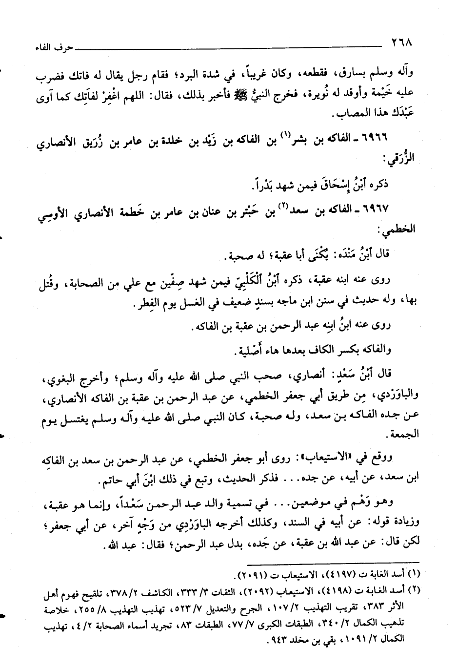 (٢) أسد الغابة ت (٤١٩٨) ، الاستيعاب (٢٠٩٢) ، الثقات ٣/ ٣٣٣، الكاشف ٢/ ٣٧٨، تلقيح فهوم أهل الأثر ٣٨٣، تقريب التهذيب ٢/ ١٠٧، الجرح والتعديل ٧/ ٥٢٣، تهذيب التهذيب ٨/ ٢٥٥، خلاصة تذهيب الكمال ٢/ ٣٤٠، الطبقات الكبرى ٧/ ٧٧، الطبقات ٨٣، تجريد أسماء الصحابة ٢/ ٤، تهذيب الكمال ٢/ ١٠٩١، بقي بن مخلد ٩٤٣.