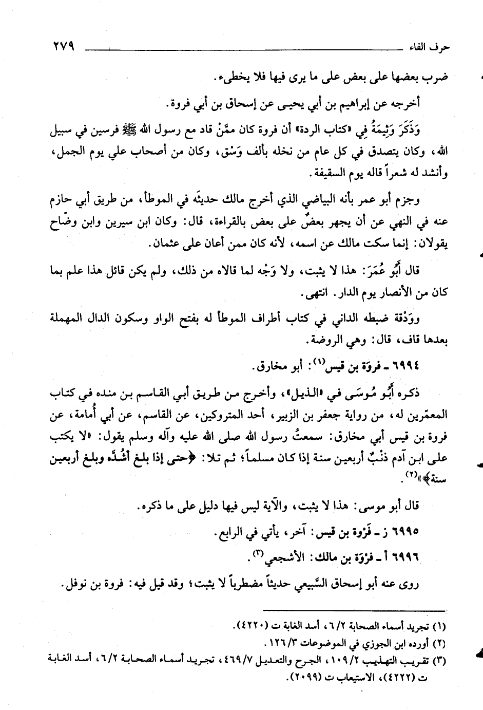 (٣) تقريب التهذيب ٢/ ١٠٩، الجرح والتعديل ٧/ ٤٦٩، تجريد أسماء الصحابة ٢/ ٦، أسد الغابة ت (٤٢٢٢) ، الاستيعاب ت (٢٠٩٩) .