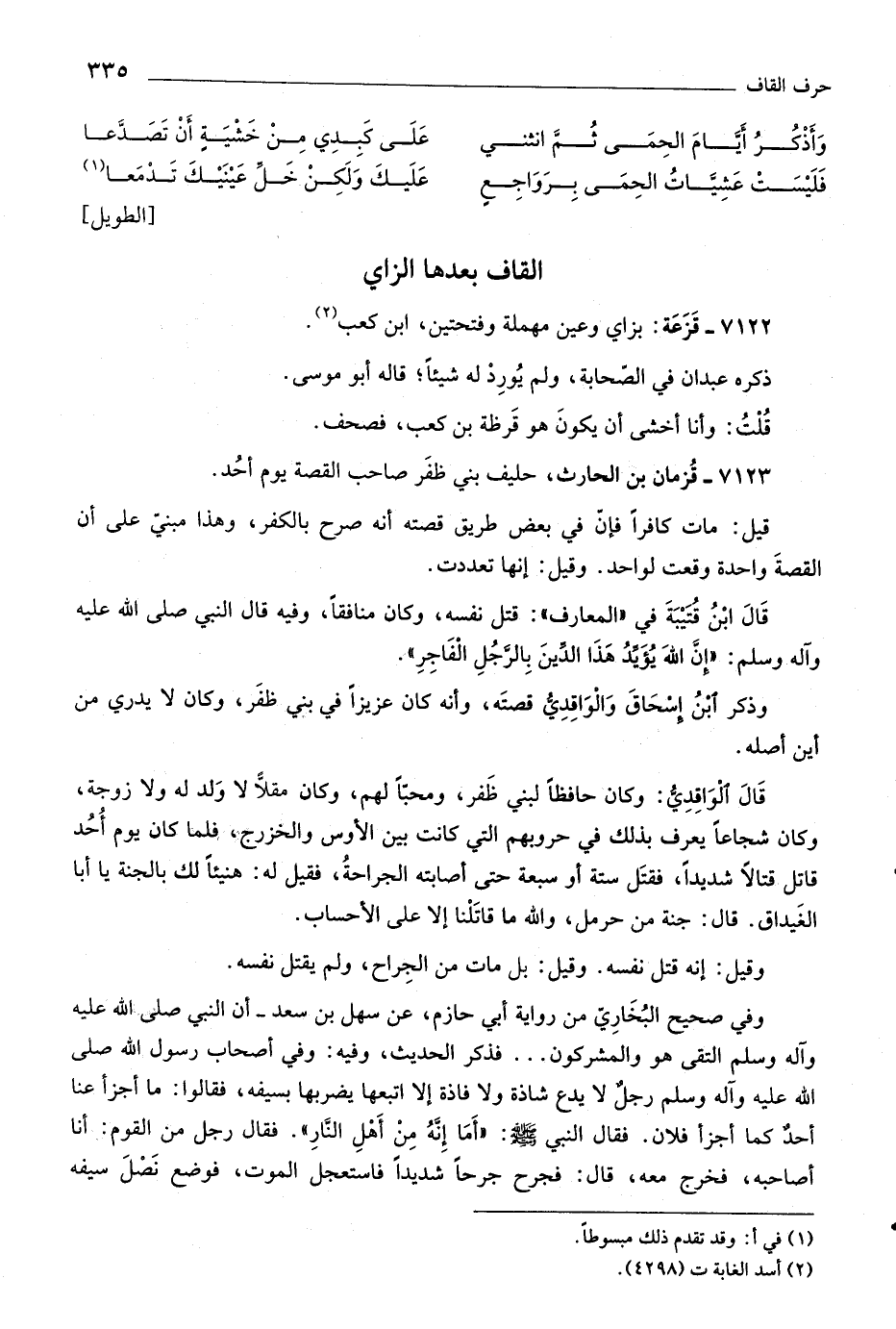 بزاي وعين مهملة وفتحتين، ابن كعب «٢» .