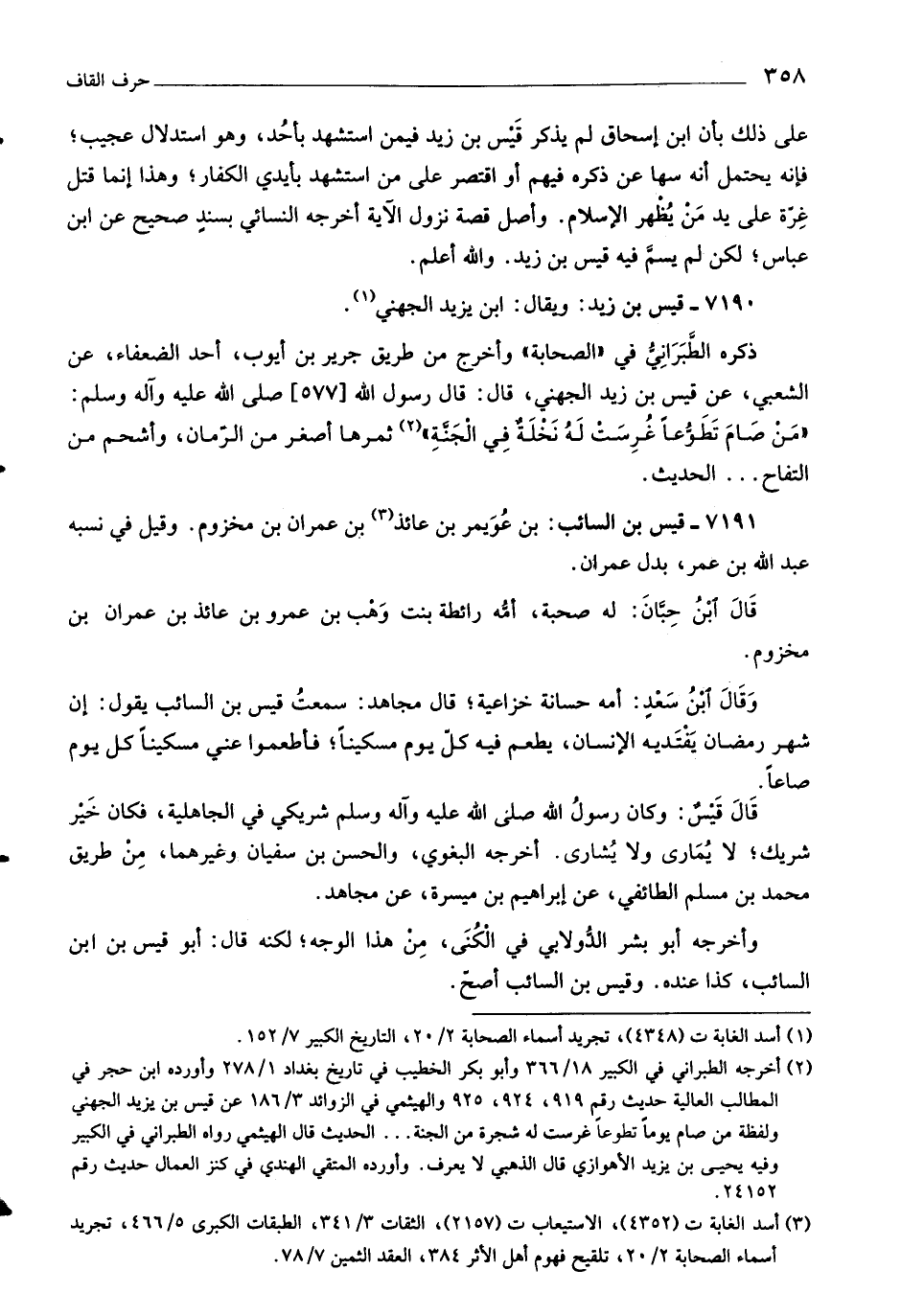 قال قيس: وكان رسول اللَّه صلّى اللَّه عليه وآله وسلم شريكي في الجاهلية، فكان خير شريك، لا يمارى ولا يشارى. أخرجه البغوي، والحسن بن سفيان وغيرهما، من طريق محمد بن مسلم الطائفي، عن إبراهيم بن ميسرة، عن مجاهد.