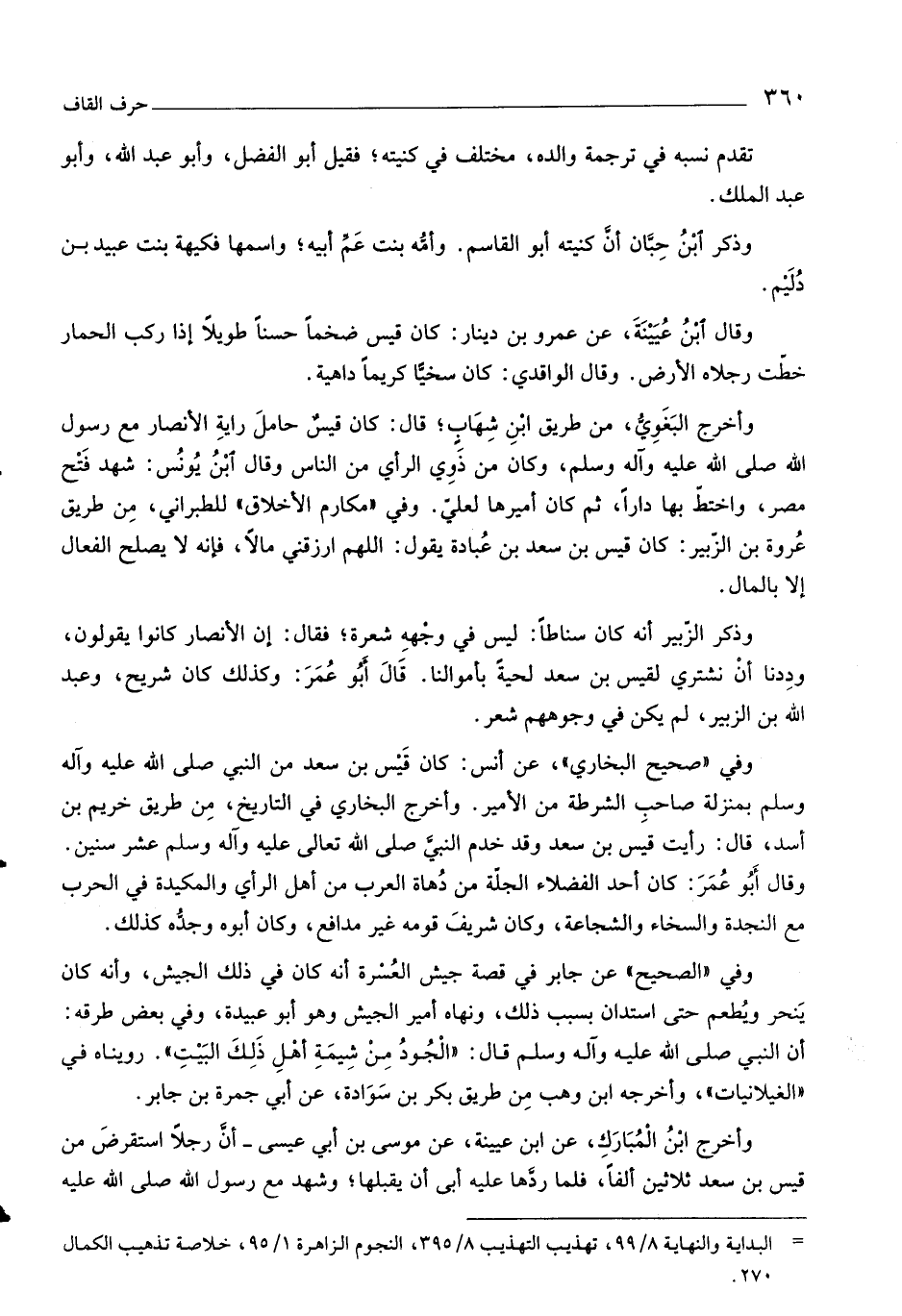 وأخرج ابن المبارك، عن ابن عيينة، عن موسى بن أبي عيسى- أنّ رجلا استقرض من قيس بن سعد ثلاثين ألفا، فلما ردّها عليه أبى أن يقبلها، وشهد مع رسول اللَّه صلّى اللَّه عليه