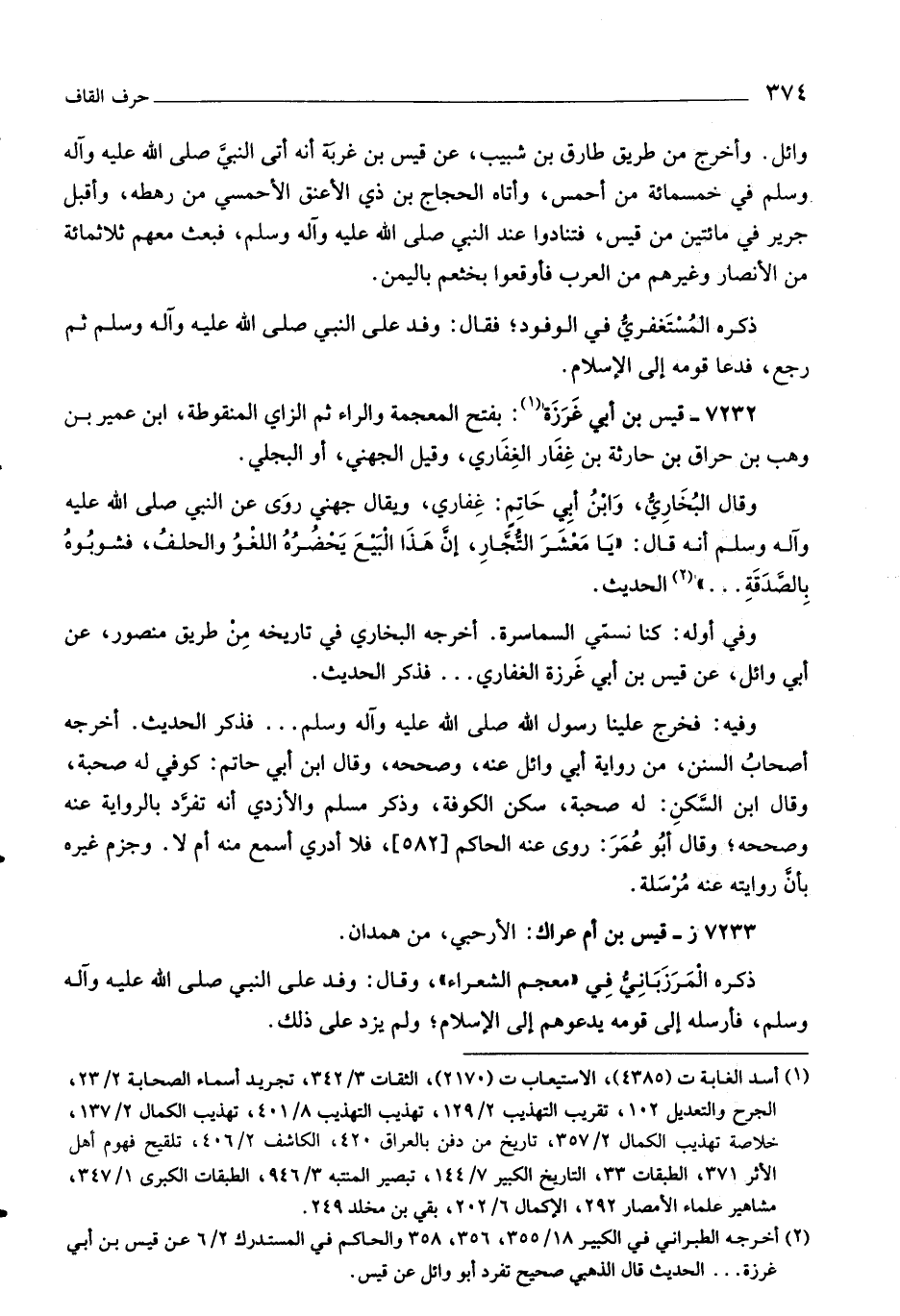 (٢) أخرجه الطبراني في الكبير ١٨/ ٣٥٥، ٣٥٦، ٣٥٨ والحاكم في المستدرك ٢/ ٦ عن قيس بن أبي غرزة ... الحديث قال الذهبي صحيح تفرد أبو وائل عن قيس.