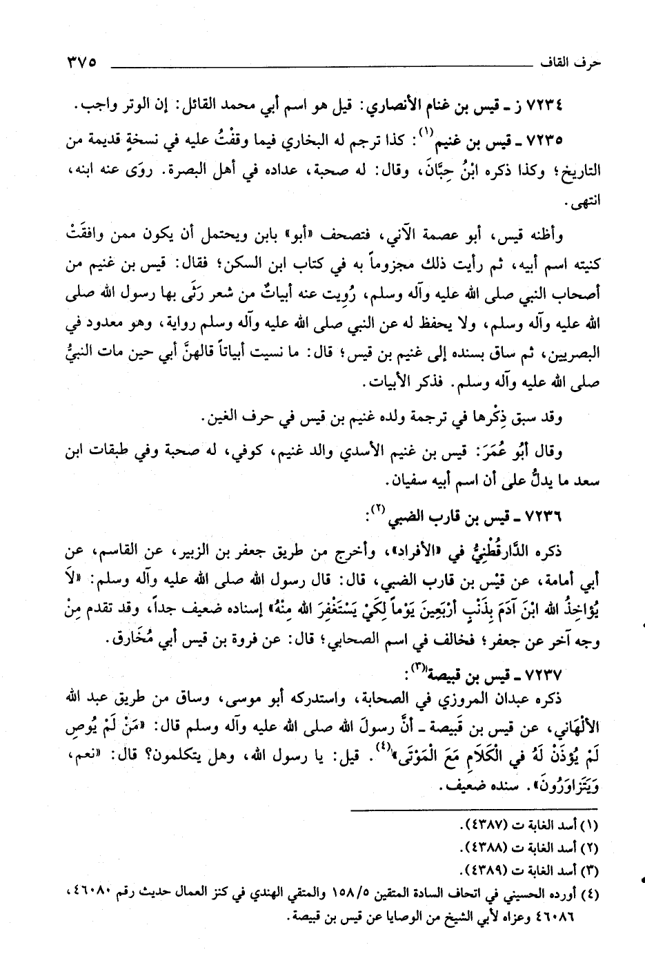 (٤) أورده الحسيني في اتحاف السادة المتقين ٥/ ١٥٨ والمتقي الهندي في كنز العمال حديث رقم ٤٦٠٨٠، ٤٦٠٨٦ وعزاه لأبي الشيخ من الوصايا عن قيس بن قبيصة.
