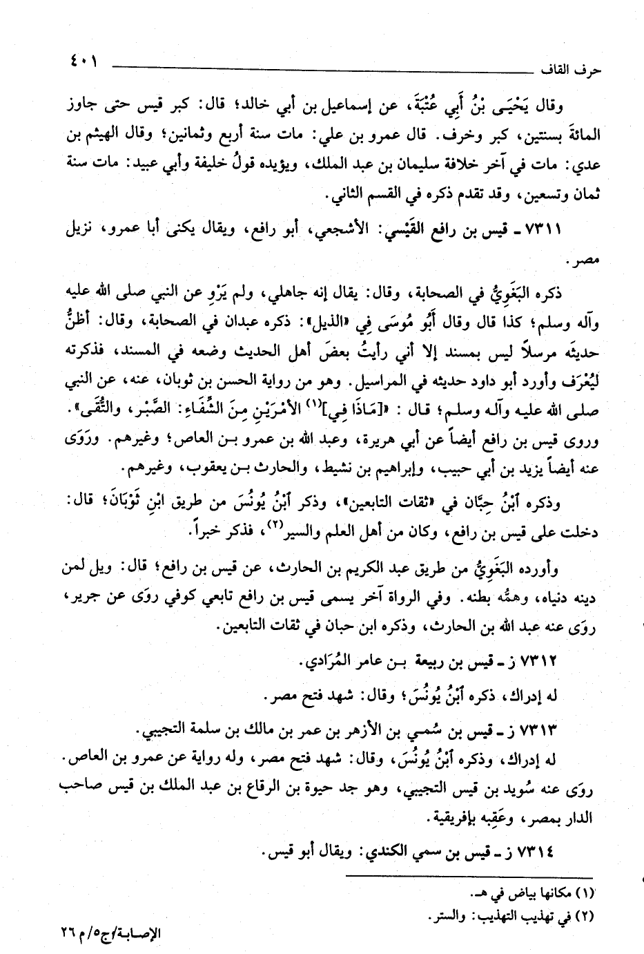 وفي الرواة آخر يسمى قيس بن رافع تابعي كوفي روى عن جرير، روى عنه عبد اللَّه بن الحارث، وذكره ابن حبان في ثقات التابعين.