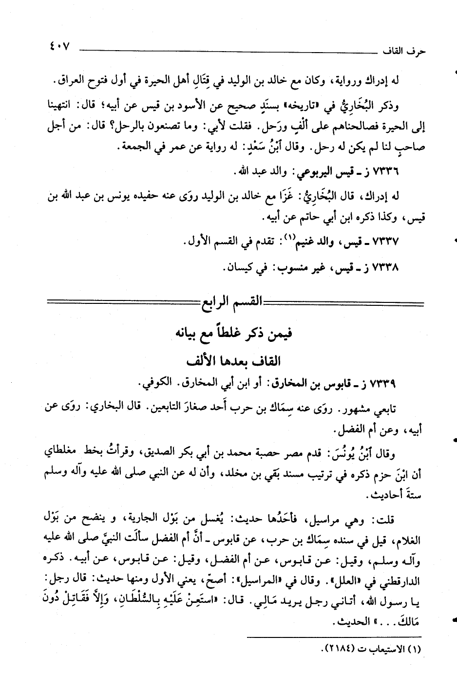 القسم الرابع فيمن ذكر غلطا مع بيانه