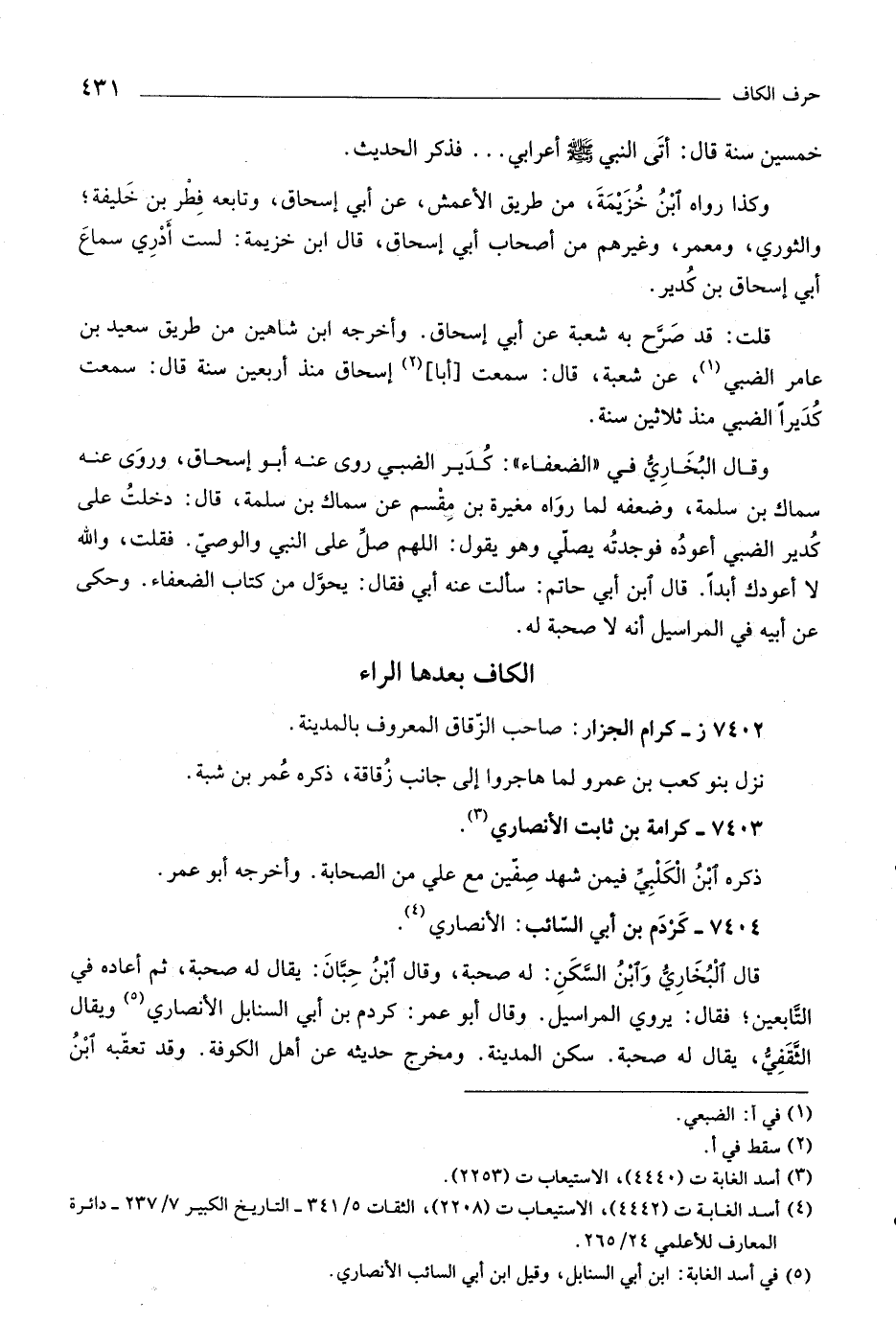 (٤) أسد الغابة ت (٤٤٤٢) ، الاستيعاب ت (٢٢٠٨) ، الثقات ٥/ ٣٤١- التاريخ الكبير ٧/ ٢٣٧- دائرة المعارف للأعلمي ٢٤/ ٢٦٥.