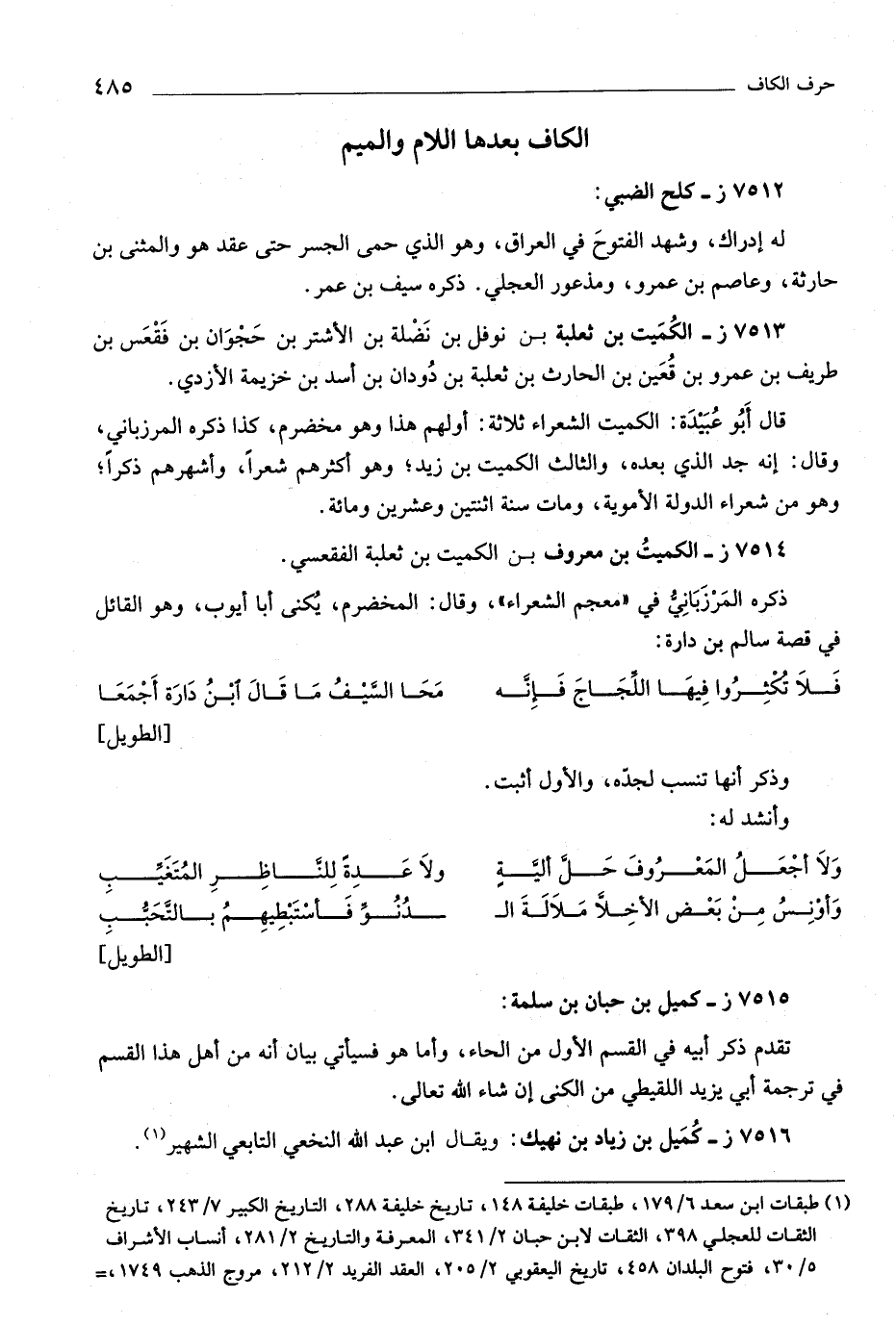 ٧٥١٦ ز- كميل بن زياد بن نهيك:
