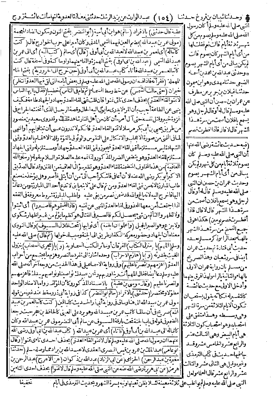(وقال موسى بن عقبة): بالإسناد المذكور وكان المؤلّف رواه بالإسناد الواحد مطوّلاً ومختصرًا (حدّثني) بالإفراد (سالم أبو النضر): كذا في رواية أبي ذر وسقط عند غيره من قوله مولى عمر بن عبيد الله إلى هنا وساق في رواية أبي ذر الحديث كالباقين (كنت كاتبًا لعمر بن عبيد الله) صريح في أن سالمًا كاتب عمر بن عبيد الله وهو يرد على العيني كالحافظ ابن حجر حيث رجعا الضمير في قوله في باب الجنة تحت بارقة السيوف عن سالم أبي النضر مولى عمر بن عبيد الله وكان كاتبًا له إلى عبد الله بن أبي أوفى (فأتاه) أي عمر بن عبيد الله (كتاب عبد الله بن أبي أوفى -رضي الله عنهما- أن رسول الله -صَلَّى اللَّهُ عَلَيْهِ وَسَلَّمَ- قال): (لا تمنَّوا لِقَاءَ العدوّ) بحذف إحدى تاءي تمنوا.