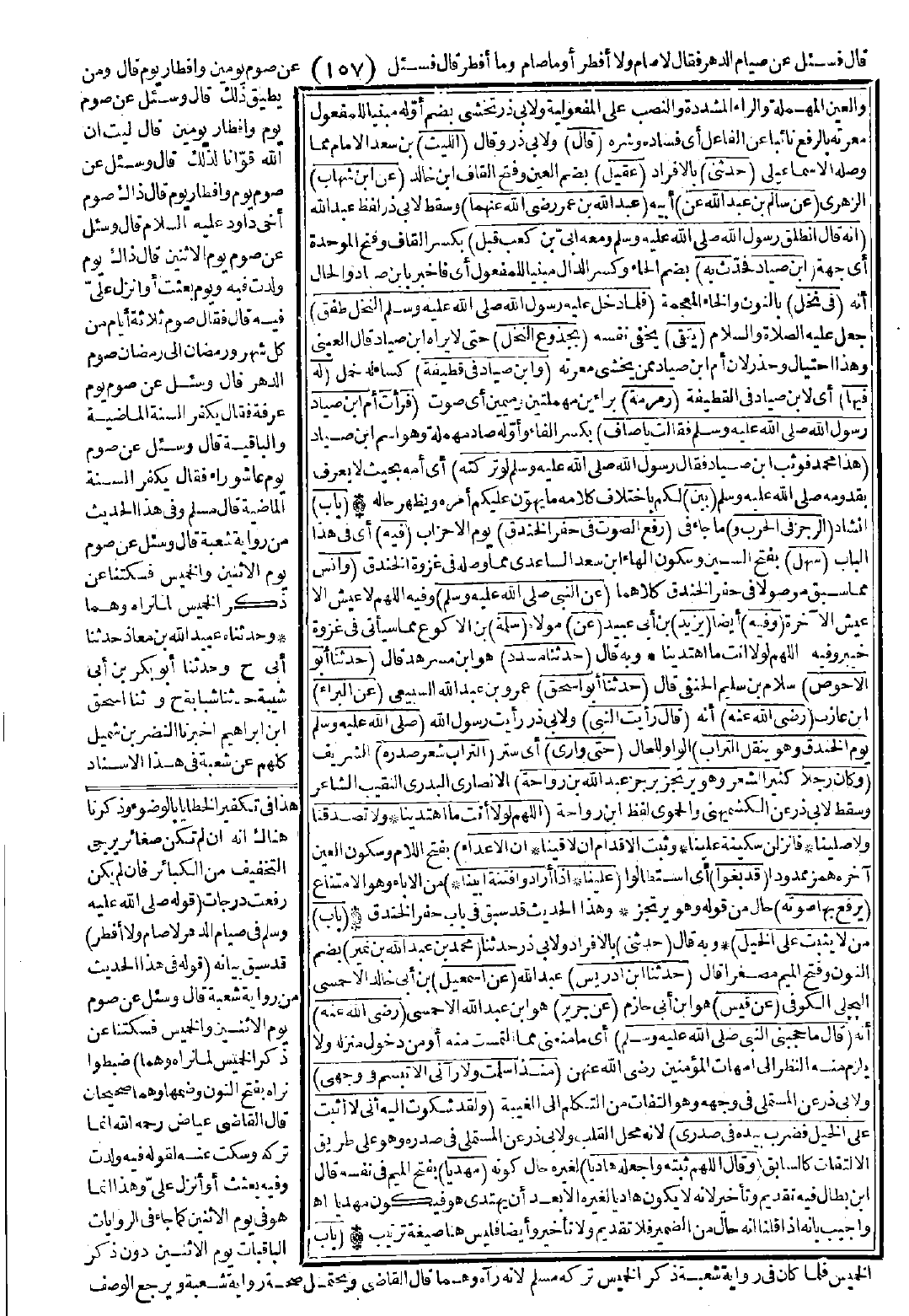 3034 - حَدَّثَنَا مُسَدَّدٌ حَدَّثَنَا أَبُو الأَحْوَصِ حَدَّثَنَا أَبُو إِسْحَاقَ عَنِ الْبَرَاءِ -رضي الله عنه- قَالَ: "رَأَيْتُ رَسُولَ اللهِ -صَلَّى اللَّهُ عَلَيْهِ وَسَلَّمَ- يَوْمَ الْخَنْدَقِ وَهُوَ يَنْقُلُ التُّرَابَ حَتَّى وَارَى التُّرَابُ شَعَرَ صَدْرِهِ -وَكَانَ رَجُلاً كَثِيرَ الشَّعَرِ- وَهْوَ يَرْتَجِزُ بِرَجَزِ عَبْدِ اللَّهِ: