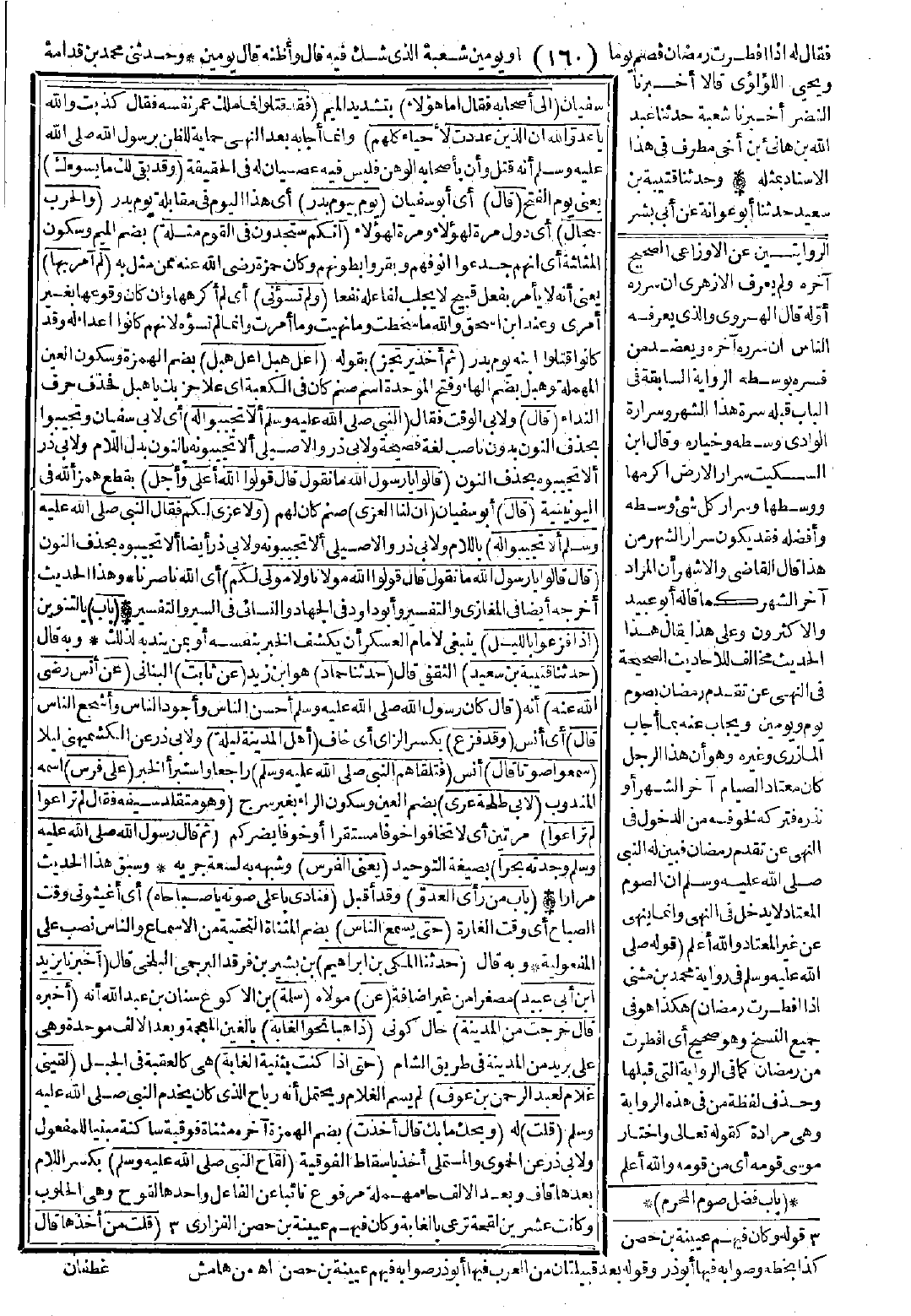 3040 - حَدَّثَنَا قُتَيْبَةُ بْنُ سَعِيدٍ حَدَّثَنَا حَمَّادٌ عَنْ ثَابِتٍ عَنْ أَنَسٍ -رضي الله عنه- قَالَ: "كَانَ رَسُولُ اللَّهِ -صَلَّى اللَّهُ عَلَيْهِ وَسَلَّمَ- أَحْسَنَ النَّاسِ، وَأَجْوَدَ النَّاسِ، وَأَشْجَعَ النَّاسِ. قَالَ وَقَدْ فَزِعَ أَهْلُ الْمَدِينَةِ لَيْلاً سَمِعُوا صَوْتًا. قَالَ: فَتَلَقَّاهُمُ النَّبِيُّ -صَلَّى اللَّهُ عَلَيْهِ وَسَلَّمَ- عَلَى فَرَسٍ لأَبِي طَلْحَةَ عُرْيٍ وَهُوَ مُتَقَلِّدٌ سَيْفَهُ فَقَالَ: لَمْ تُرَاعُوا لَمْ تُرَاعُوا. ثُمَّ قَالَ رَسُولُ اللَّهِ -صَلَّى اللَّهُ عَلَيْهِ وَسَلَّمَ-: وَجَدْتُهُ بَحْرًا. يَعْنِي الْفَرَسَ".