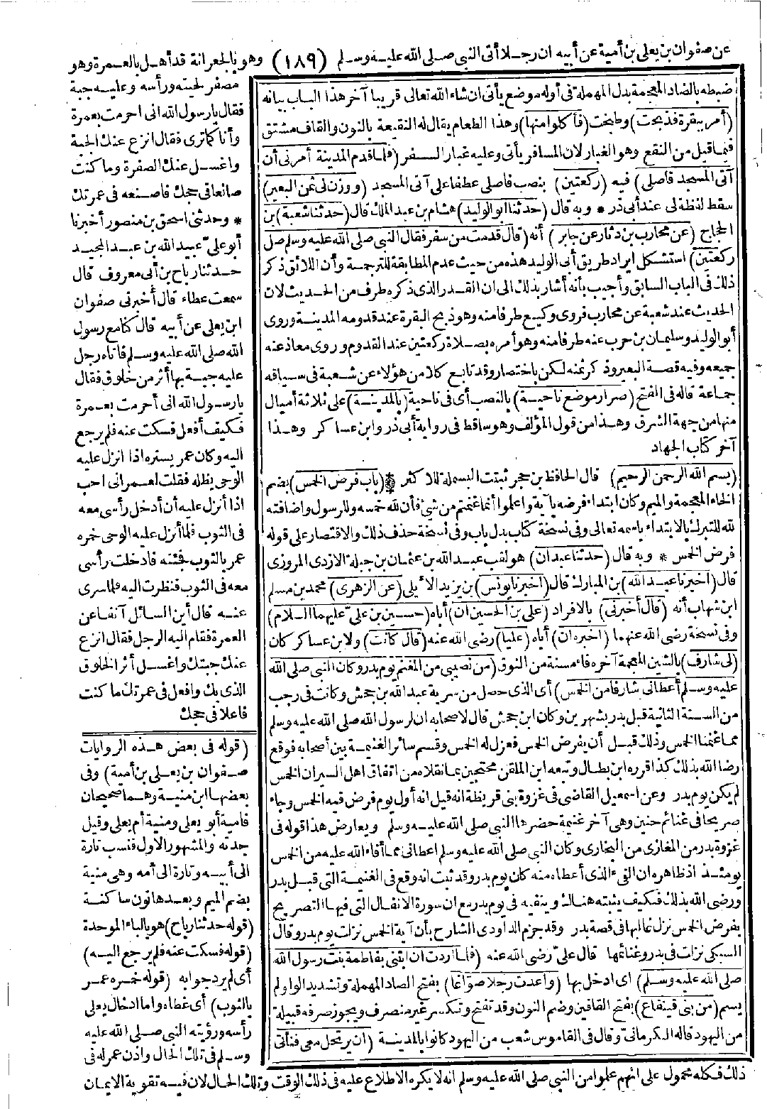 رَسُولُ اللَّهِ -صَلَّى اللَّهُ عَلَيْهِ وَسَلَّمَ- يَلُومُ حَمْزَةَ فِيمَا فَعَلَ، فَإِذَا حَمْزَةُ قَدْ ثَمِلَ مُحْمَرَّةً عَيْنَاهُ، فَنَظَرَ حَمْزَةُ إِلَى رَسُولِ اللَّهِ -صَلَّى اللَّهُ عَلَيْهِ وَسَلَّمَ-، ثُمَّ صَعَّدَ النَّظَرَ، فَنَظَرَ إِلَى رُكْبَتِهِ، ثُمَّ صَعَّدَ النَّظَرَ فَنَظَرَ إِلَى سُرَّتِهِ، ثُمَّ صَعَّدَ النَّظَرَ فَنَظَرَ إِلَى وَجْهِهِ. ثُمَّ قَالَ حَمْزَةُ: هَلْ أَنْتُمْ إِلاَّ عَبِيدٌ لأَبِي؟ فَعَرَفَ رَسُولُ اللَّهِ -صَلَّى اللَّهُ عَلَيْهِ وَسَلَّمَ- أَنَّهُ قَدْ ثَمِلَ، فَنَكَصَ رَسُولُ اللَّهِ -صَلَّى اللَّهُ عَلَيْهِ وَسَلَّمَ- عَلَى عَقِبَيْهِ الْقَهْقَرَى، وَخَرَجْنَا مَعَهُ".