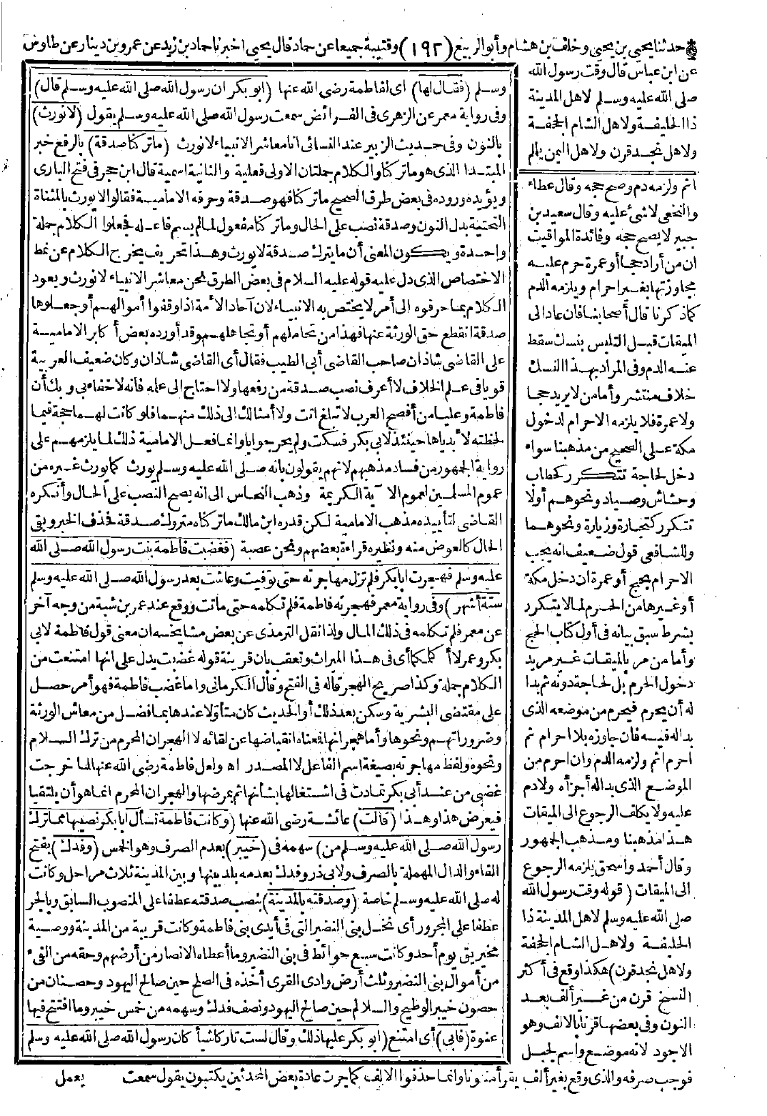عند النسائي: إنّا معاشر الأنبياء لا نورث (ما تركنا صدقة) بالرفع خبر المبتدأ الذي هو ما تركنا والكلام جملتان الأولى فعلية والثانية اسمية. قال ابن حجر في فتح الباري: ويؤيده وروده في بعض طرق الصحيح ما تركنا فهو صدقة وحرفه الإمامية فقالوا: لا يورث بالمثناة التحتية بدل النون وصدقة نصب على الحال وما تركنا مفعول لما لم يسم فاعله فجعلوا الكلام جملة واحدة ويكون المعنى أن ما يترك صدقة لا يورث وهذا تحريف يخرج الكلام عن نمط الاختصاص الذي دل عليه قوله عليه السلام في بعض الطرق: "نحن معاشر الأنبياء لا نورث" ويعود الكلام بما حرفوه إلى أمر لا يختص به الأنبياء لأن آحاد الأمة إذا وقفوا أموالهم أو جعلوها صدقة انقطع حق الورثة عنها فهذا من تحاملهم أو تجاهلهم، وقد أورده بعض أكابر الإمامية على القاضي شاذان صاحب القاضي أبي الطيب فقال أي القاضي شاذان، وكان ضعيف العربية قويًا في علم الخلاف: لا أعرف نصب صدقة من رفعها ولا أحتاج إلى علمه فإنه لا خفاء بي وبك أن فاطمة وعليًّا من أفصح العرب لا تبلغ أنت ولا أمثالك إلى ذلك منهما فلو كانت لهما حجة فيما لحظته لأبدياها حينئذ لأبي بكر فسكت ولم يحر جوابًا، وإنما فعل الإمامية ذلك لما يلزمهم على رواية الجمهور من فساد مذهبهم لأنهم يقولون بأنه -صَلَّى اللَّهُ عَلَيْهِ وَسَلَّمَ- يورث كما يورث غيره من عموم المسلمين لعموم الآية الكريمة.