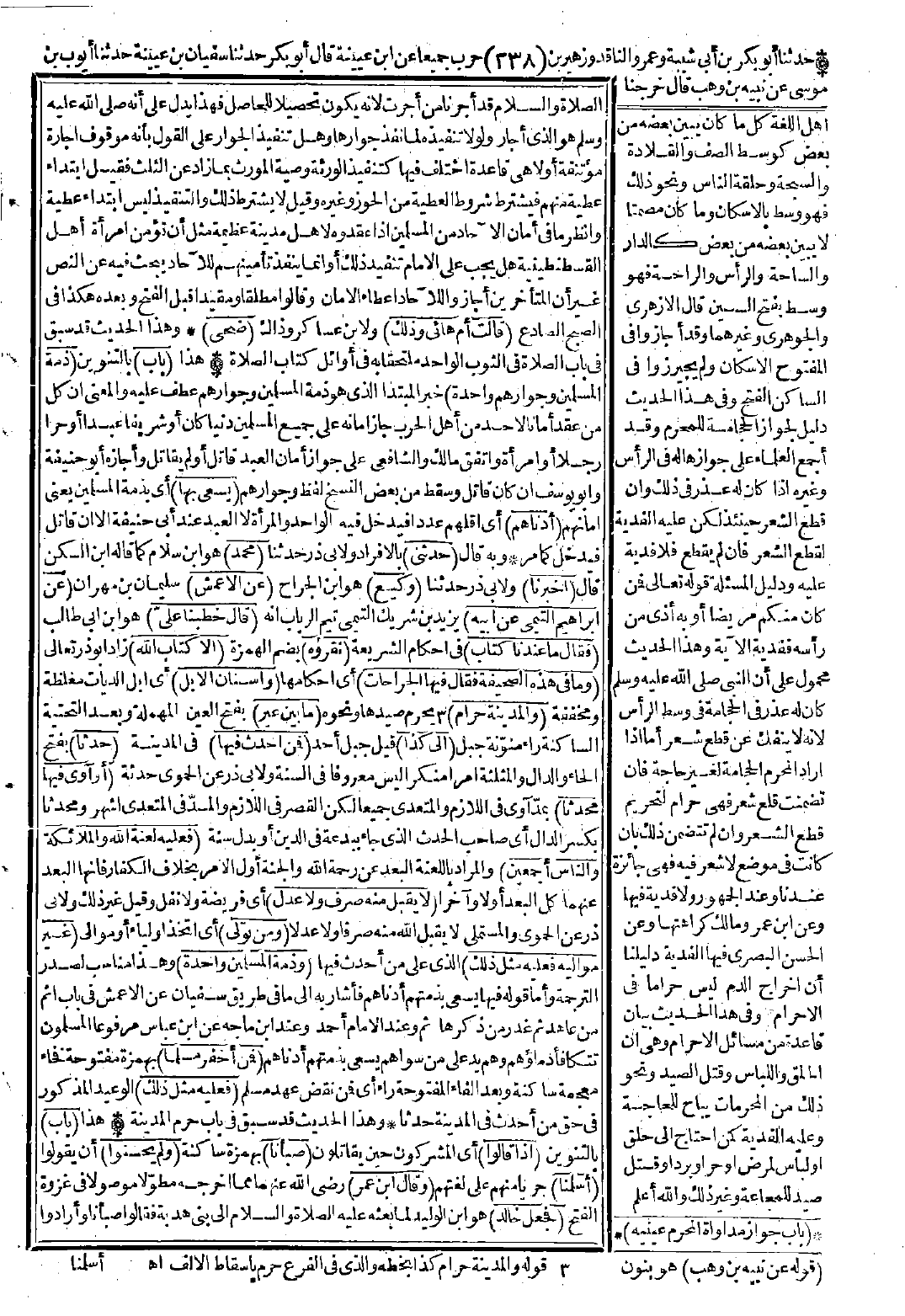 3172 - حَدَّثَني مُحَمَّدٌ أَخْبَرَنَا وَكِيعٌ عَنِ الأَعْمَشِ عَنْ إِبْرَاهِيمَ التَّيْمِيِّ عَنْ أَبِيهِ قَالَ: "خَطَبَنَا عَلِيٌّ فَقَالَ: مَا عِنْدَنَا كِتَابٌ نَقْرَؤُهُ إِلاَّ كِتَابُ اللَّهِ وَمَا فِي هَذِهِ الصَّحِيفَةِ، فَقَالَ: فِيهَا الْجِرَاحَاتُ وَأَسْنَانُ الإِبِلِ، وَالْمَدِينَةُ حَرَمٌ مَا بَيْنَ عَيْرٍ إِلَى كَذَا، فَمَنْ أَحْدَثَ فِيهَا حَدَثًا أَوْ آوَى فِيهَا مُحْدِثًا فَعَلَيْهِ لَعْنَةُ اللَّهِ وَالْمَلاَئِكَةِ وَالنَّاسِ أَجْمَعِينَ، لاَ يُقْبَلُ مِنْهُ صَرْفٌ وَلاَ عَدْلٌ، وَمَنْ تَوَلَّى غَيْرَ مَوَالِيهِ فَعَلَيْهِ مِثْلُ ذَلِكَ. وَذِمَّةُ الْمُسْلِمِينَ وَاحِدَةٌ، فَمَنْ أَخْفَرَ مُسْلِمًا فَعَلَيْهِ مِثْلُ ذَلِكَ".