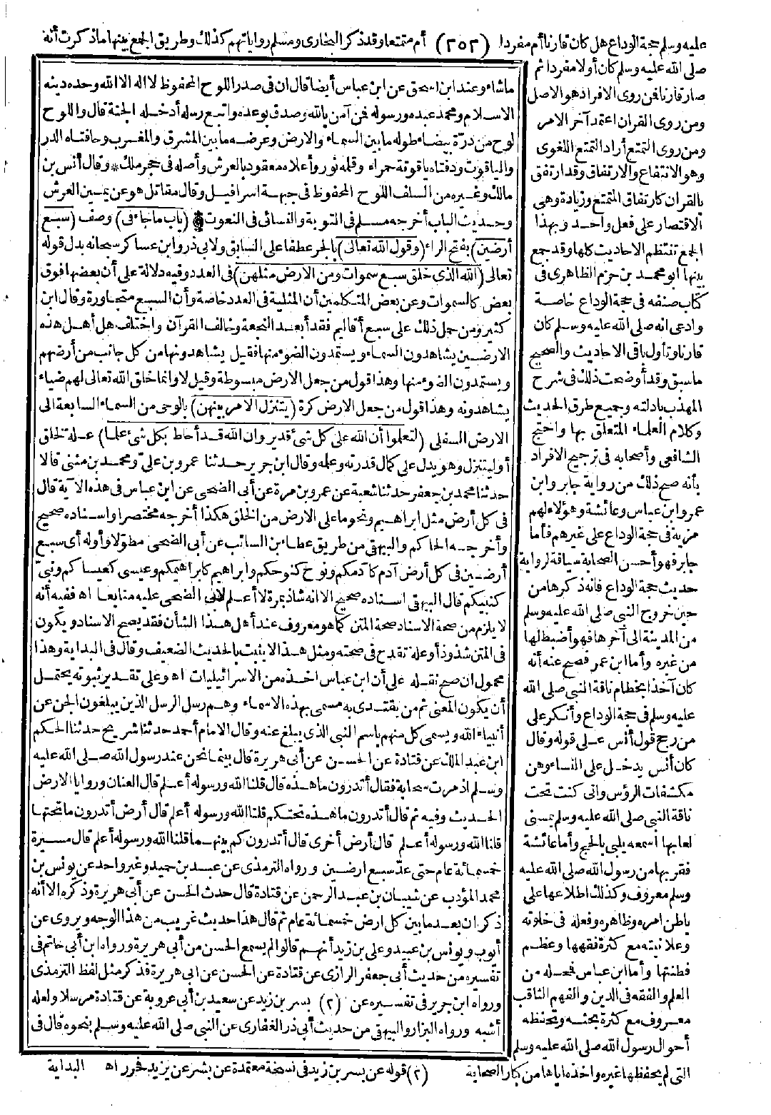 2 - باب مَا جَاءَ فِي سَبْعِ أَرَضِينَ، وَقَوْلِ اللَّهِ تَعَالَى: {اللَّهُ الَّذِي خَلَقَ سَبْعَ سَمَوَاتٍ وَمِنَ الأَرْضِ مِثْلَهُنَّ يَتَنَزَّلُ الأَمْرُ بَيْنَهُنَّ لِتَعْلَمُوا أَنَّ اللَّهَ عَلَى كُلِّ شَىْءٍ قَدِيرٌ وَأَنَّ اللَّهَ قَدْ أَحَاطَ بِكُلِّ شَىْءٍ عِلْمًا} [الطلاق: 12]. {وَالسَّقْفِ الْمَرْفُوعِ}: السَّمَاءُ. {سَمْكَهَا}: بِنَاءَهَا. {الْحُبُكُ}: اسْتِوَاؤُهَا وَحُسْنُهَا. {وَأَذِنَتْ}: سَمِعَتْ وَأَطَاعَتْ. {وَأَلْقَتْ}: أَخْرَجَتْ مَا فِيهَا مِنَ الْمَوْتَى، {وَتَخَلَّتْ} عَنْهُمْ. {طَحَاهَا} أَي دَحَاهَا. {بالسَّاهِرَةُ}: وَجْهُ الأَرْضِ، كَانَ فِيهَا الْحَيَوَانُ نَوْمُهُمْ وَسَهَرُهُمْ.
