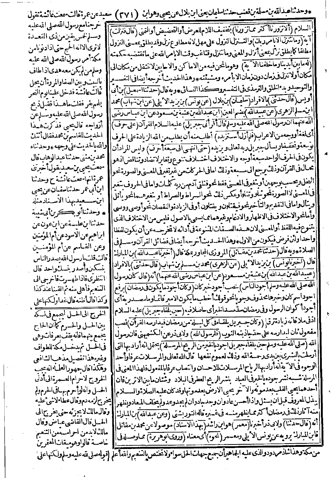 3219 - حَدَّثَنَا إِسْمَاعِيلُ قَالَ: حَدَّثَنِي سُلَيْمَانُ عَنْ يُونُسَ عَنِ ابْنِ شِهَابٍ عَنْ عُبَيْدِ اللَّهِ بْنِ عَبْدِ اللَّهِ بْنِ عُتْبَةَ بْنِ مَسْعُودٍ عَنِ ابْنِ عَبَّاسٍ -رضي الله عنهما- أَنَّ رَسُولَ اللَّهِ -صَلَّى اللَّهُ عَلَيْهِ وَسَلَّمَ- قَالَ: «أَقْرَأَنِي جِبْرِيلُ عَلَى حَرْفٍ، فَلَمْ أَزَلْ أَسْتَزِيدُهُ حَتَّى انْتَهَى إِلَى سَبْعَةِ أَحْرُفٍ». [الحديث 3219 - طرفه في: 4991].