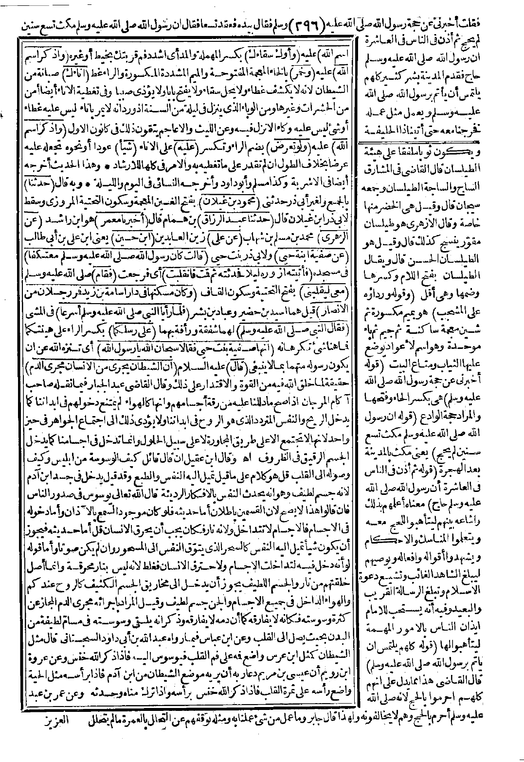 3281 - حَدَّثَنَا مَحْمُودُ بْنُ غَيْلاَنَ حَدَّثَنَا عَبْدُ الرَّزَّاقِ أَخْبَرَنَا مَعْمَرٌ عَنِ الزُّهْرِيِّ عَنْ عَلِيِّ بْنِ حُسَيْنٍ عَنْ صَفِيَّةَ بنتِ حُيَىٍّ قَالَتْ: "كَانَ رَسُولُ اللَّهِ -صَلَّى اللَّهُ عَلَيْهِ وَسَلَّمَ- مُعْتَكِفًا، فَأَتَيْتُهُ أَزُورُهُ لَيْلاً، فَحَدَّثْتُهُ ثُمَّ قُمْتُ فَانْقَلَبْتُ، فَقَامَ مَعِي لِيَقْلنِي -وَكَانَ مسْكَنُهَا فِي دَارِ أُسَامَةَ بْنِ زَيْدٍ - فَمَرَّ رَجُلاَنِ مِنَ الأَنْصَارِ، فَلَمَّا رَأَيَا النَّبِيَّ -صَلَّى اللَّهُ عَلَيْهِ وَسَلَّمَ- أَسْرَعَا فَقَالَ النَّبِيُّ -صَلَّى اللَّهُ عَلَيْهِ وَسَلَّمَ-: عَلَى رِسْلِكُمَا، إِنَّهَا صَفِيَّةُ بِنْتُ حُيَىٍّ. فَقَالاَ: سُبْحَانَ اللَّهِ يَا رَسُولَ اللَّهِ. قَالَ: إِنَّ الشَّيْطَانَ يَجْرِي مِنَ الإِنْسَانِ مَجْرَى الدَّمِ، وَإِنِّي خَشِيتُ أَنْ يَقْذِفَ فِي قُلُوبِكُمَا سُوءًا. أَوْ قَالَ: شَيْئًا».