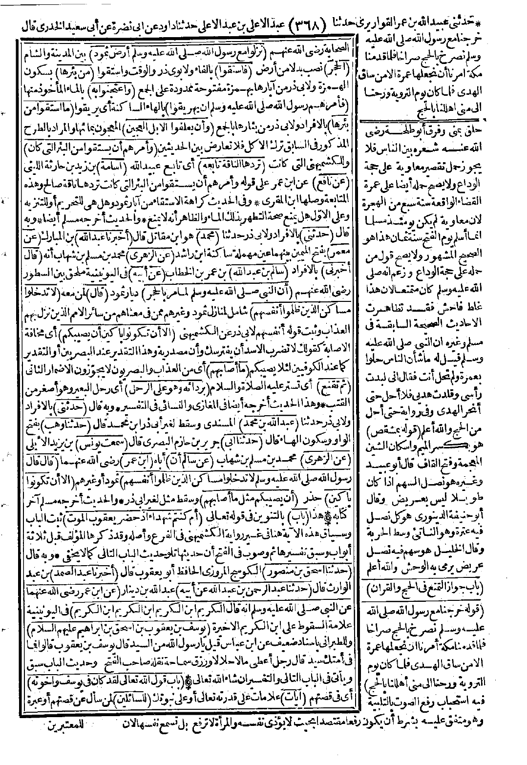 3380 - حَدَّثَنِي مُحَمَّدٌ أَخْبَرَنَا عَبْدُ اللَّهِ عَنْ مَعْمَرٍ عَنِ الزُّهْرِيِّ قَالَ: أَخْبَرَنِي سَالِمُ بْنُ عَبْدِ اللَّهِ عَنْ أَبِيهِ - رضي الله عنه-: أَنَّ النَّبِيَّ -صَلَّى اللَّهُ عَلَيْهِ وَسَلَّمَ- لَمَّا مَرَّ بِالْحِجْرِ قَالَ: «لاَ تَدْخُلُوا مَسَاكِنَ الَّذِينَ ظَلَمُوا، إِلاَّ أَنْ تَكُونُوا بَاكِينَ أَنْ يُصِيبَكُمْ مَا أَصَابَهُمْ. ثُمَّ تَقَنَّعَ بِرِدَائِهِ وَهْوَ عَلَى الرَّحْلِ».